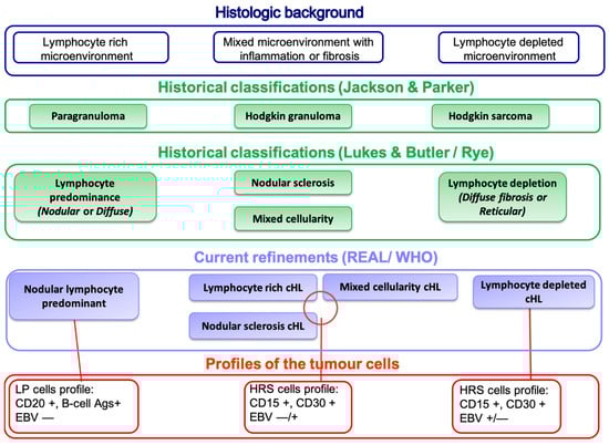 - Carbone, A.; Gloghini, A. Hodgkin lymphoma classification: Are we at a crossroads? Cancer 2017, 123, 3654–3655. [Google Scholar] [CrossRef] [PubMed]