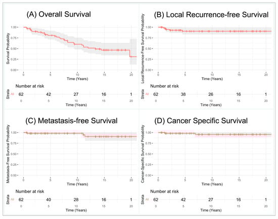 Kaplan–Meier curves for biopsy-proven Renal Cell Carcinomas: (A) overall survival, (B) local recurrence-free survival, (C) metastasis-free survival, (D) cancer-specific survival.