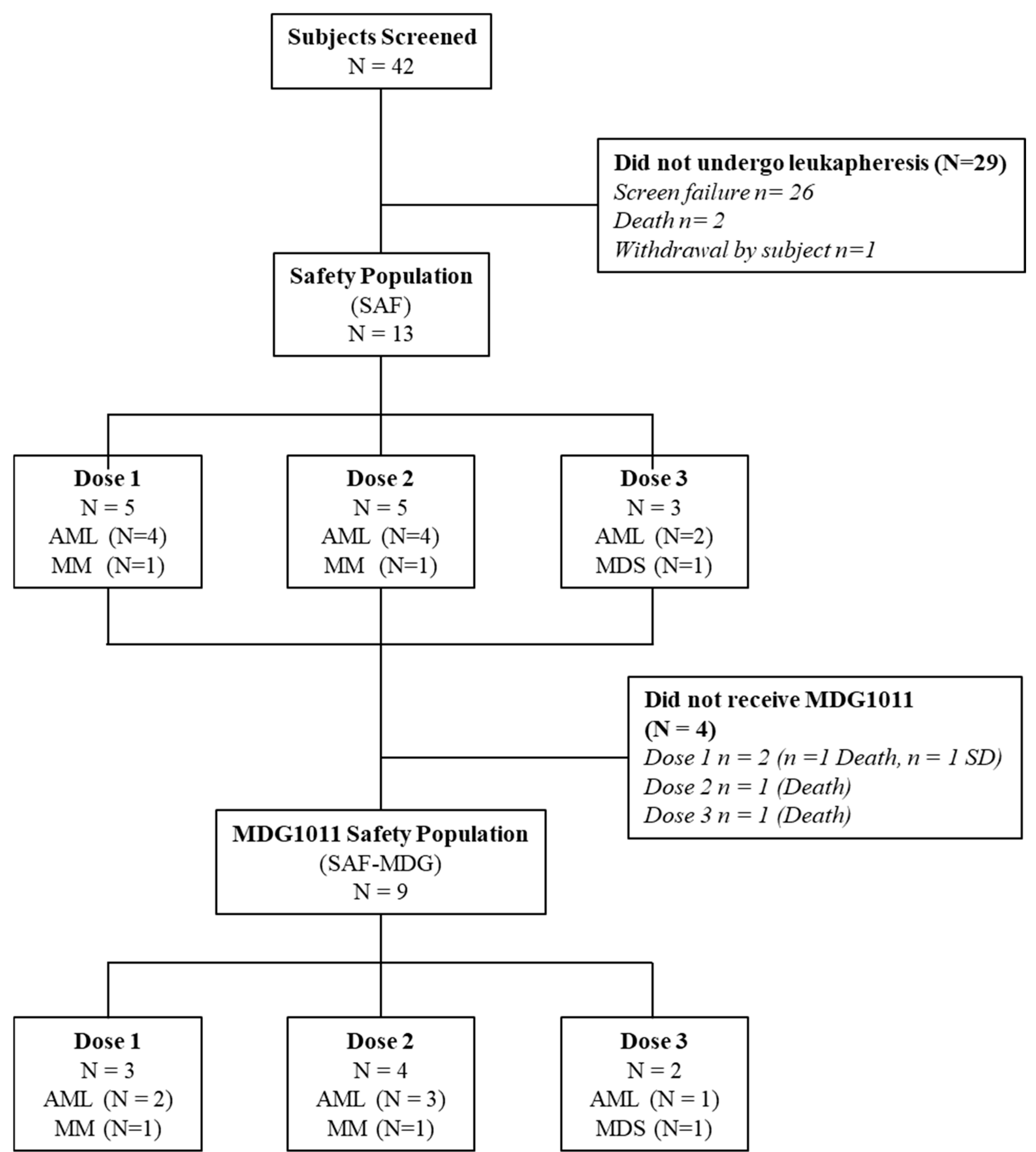 | Indication | MM | AML | AML | AML | AML | MM | AML | AML | MDS |