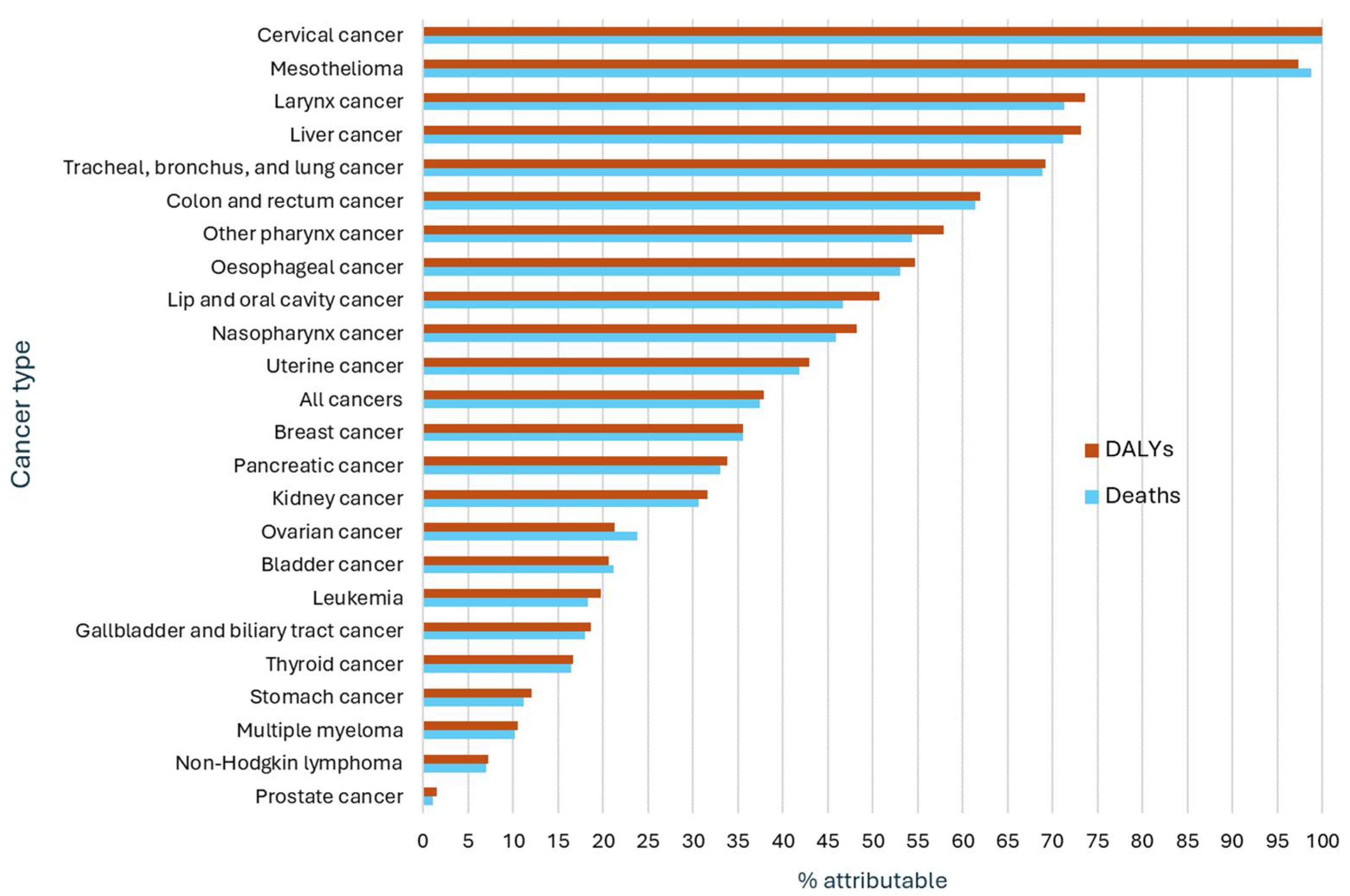3.3. Risk-Attributable Cancer DALYs Lost in Australia