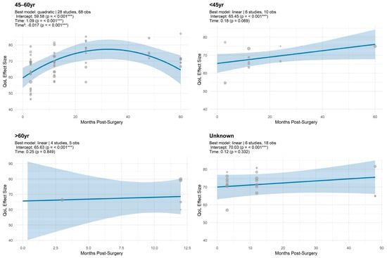 | Age Group | k | Studies | Intercept | Linear Term | Quadratic Term | R2 (QM p-Value) | QE (p-Value) |