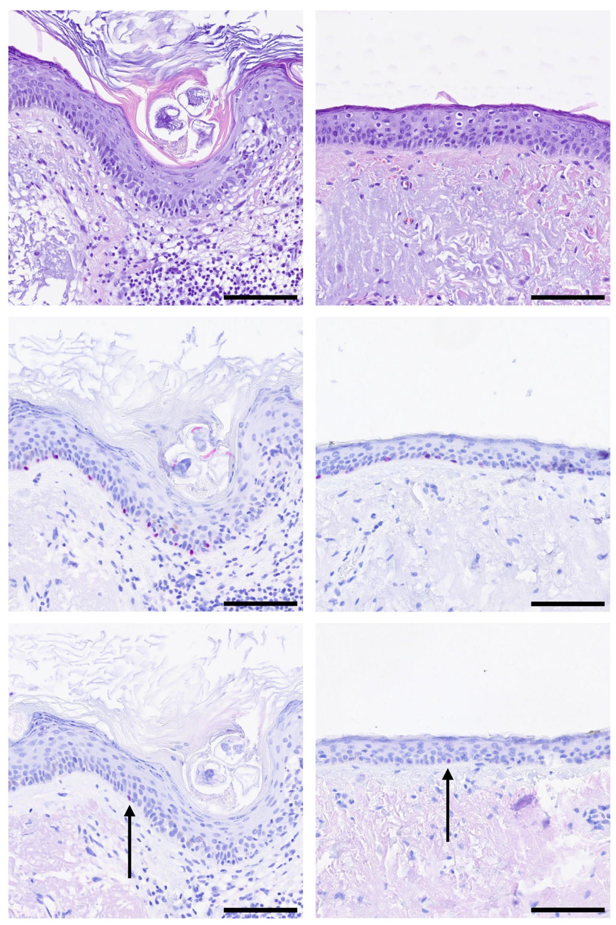 - De Wet, J.; Plessis, P.J.D.; Schneider, J.W. Staged Excision of Lentigo Maligna of the Head and Neck: Assessing Surgical Excision Margins With Melan A, SOX10, and PRAME Immunohistochemistry. Am. J. Dermatopathol. 2023, 45, 107–112. [Google Scholar] [CrossRef] [PubMed]