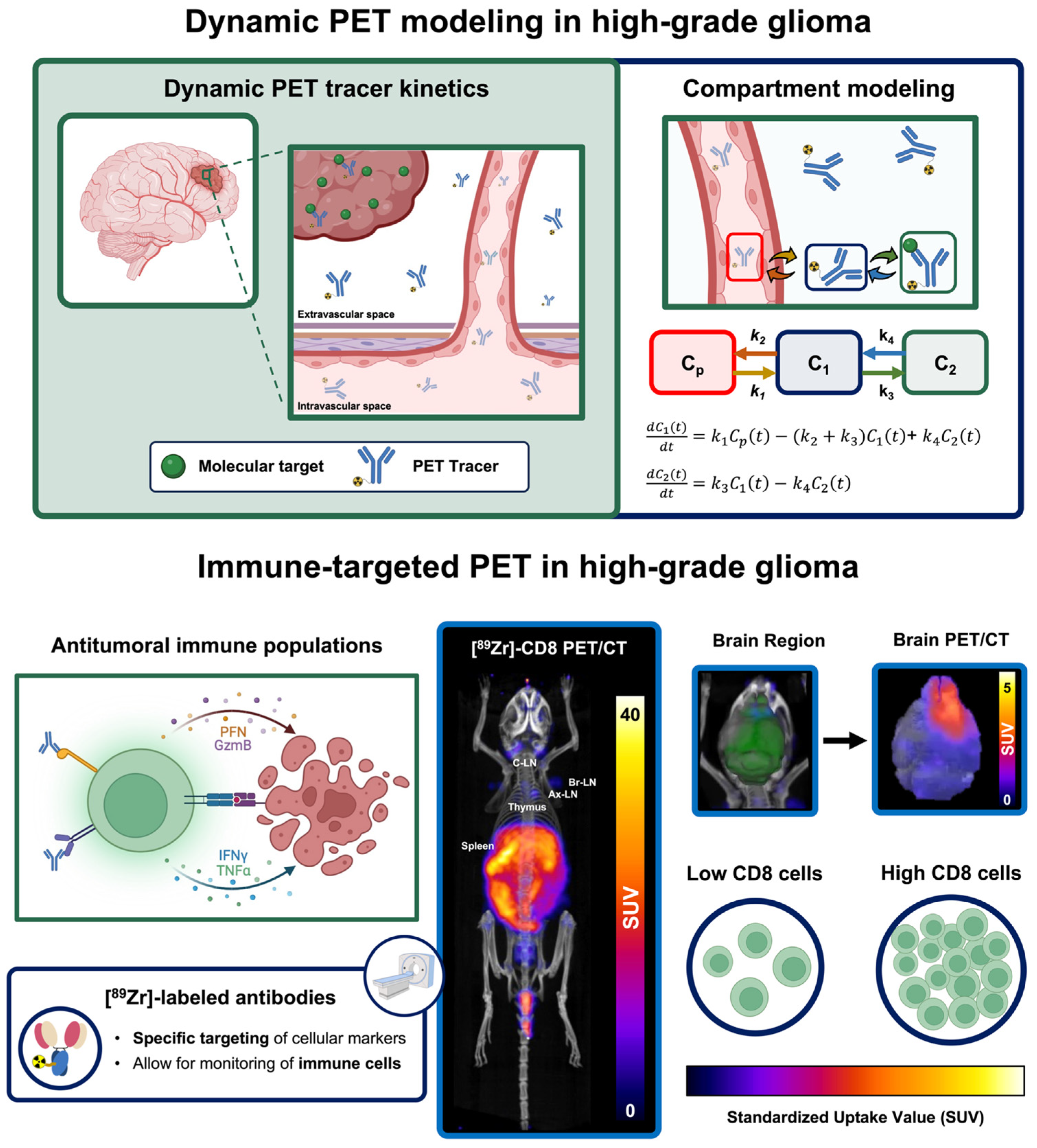 - Nagle, V.L.; Henry, K.E.; Hertz, C.A.J.; Graham, M.S.; Campos, C.; Parada, L.F.; Pandit-Taskar, N.; Schietinger, A.; Mellinghoff, I.K.; Lewis, J.S. Imaging Tumor-Infiltrating Lymphocytes in Brain Tumors with [64Cu]Cu-NOTA-Anti-CD8 PET. Clin. Cancer Res. 2021, 27, 1958–1966. [Google Scholar] [CrossRef]