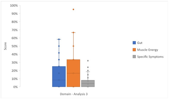 Similarly, in the univariable and multivariable analyses, we included only those predictor variables considered clinically relevant for each analysis. Multivariable analysis included the same outcome variables considered for univariable analysis for both Analysis 1 and Analysis 2, whereas for Analysis 3, the selected outcomes were Gut, Muscle/energy, and Specific symptoms.