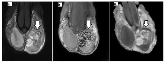- Tsili, A.C.; Argyropoulou, M.I.; Giannakis, D.; Tsampalas, S.; Sofikitis, N.; Tsampoulas, K. Diffusion-weighted MR imaging of normal and abnormal scrotum: Preliminary results. Asian J. Androl. 2012, 14, 649–654. [Google Scholar] [CrossRef]