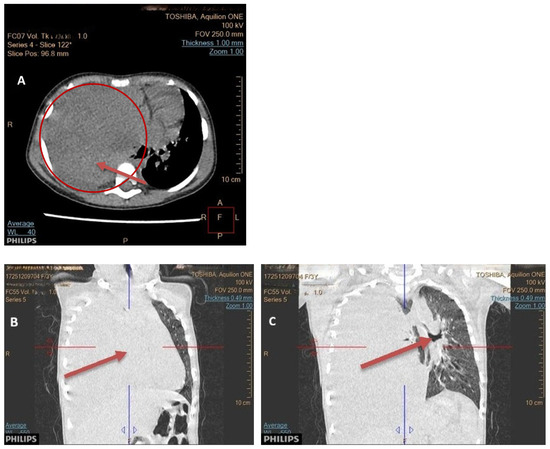 16. Okamoto, M.; Kimura, S.; Hotta, M.; Tsuruno, Y.; Fukuzawa, H. Infantile type I pleuropulmonary blastoma presenting with dyspnea due to compression by pneumothorax and an occupying tumor: A case report. Surg. Case Rep. 2023, 9, 193. [Google Scholar] [CrossRef]