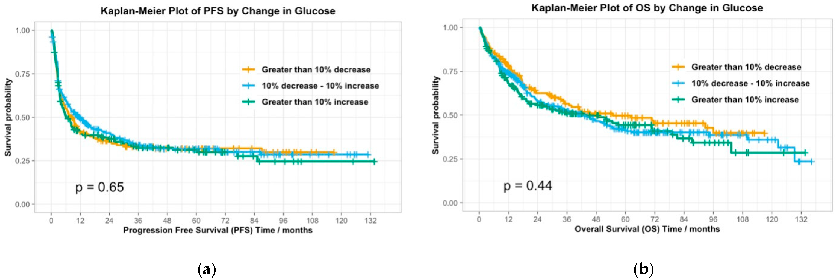 >10% Decrease in Glucose (n = 151) | 54 (35.8) | 8.2 months [2.5, 30.7] | 28.0 months [10.5, 61.7] | 108 (71.5) |