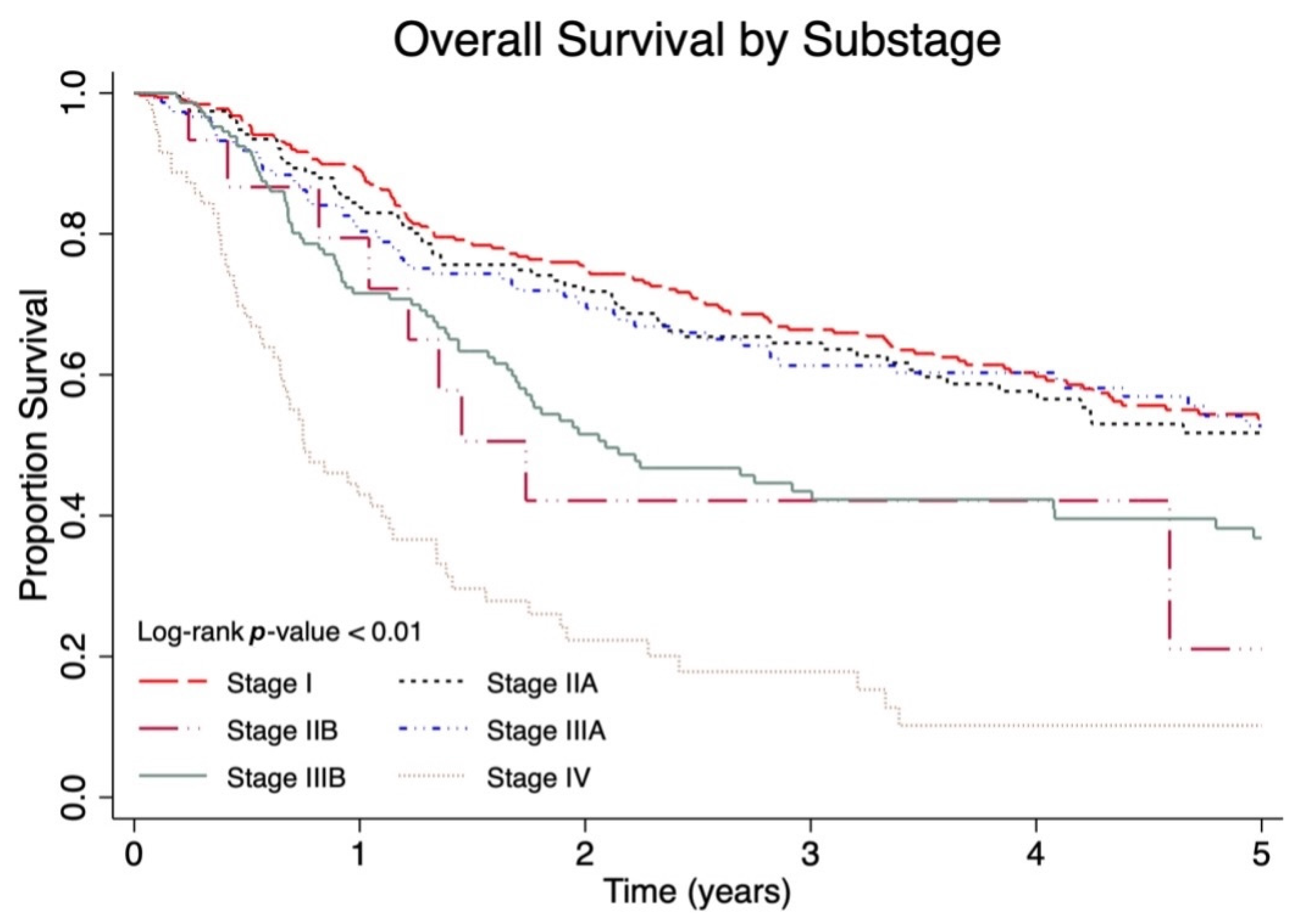 Stage IIIA | 58/151 | 52.7% | 43.5–61.0% | 40.3% | 37.5–43% |