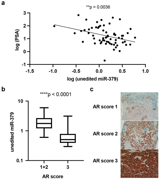 Figure 7a). Furthermore, malignant prostate tissues with low miR-379 expression were significantly associated with a higher AR score (