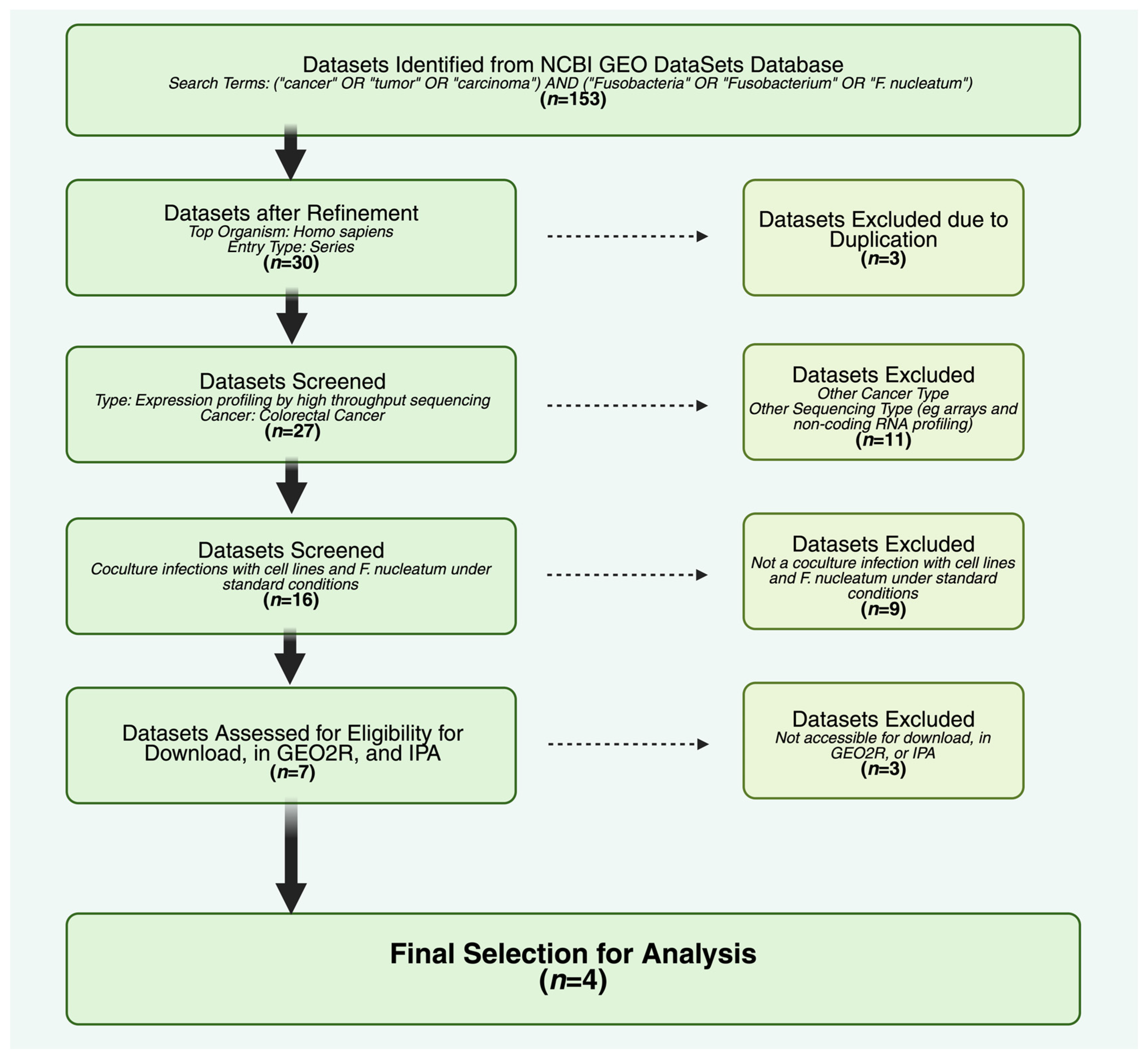 GSE175593 | October, 2021 | CRC | DLD-1 | F. nucleatum 25,586 | Overnight | 10 | F. nucleatum induces ANGPTL4 to increase glycolysis activity and thus initiate further F. nucleatum colonization | [79] |