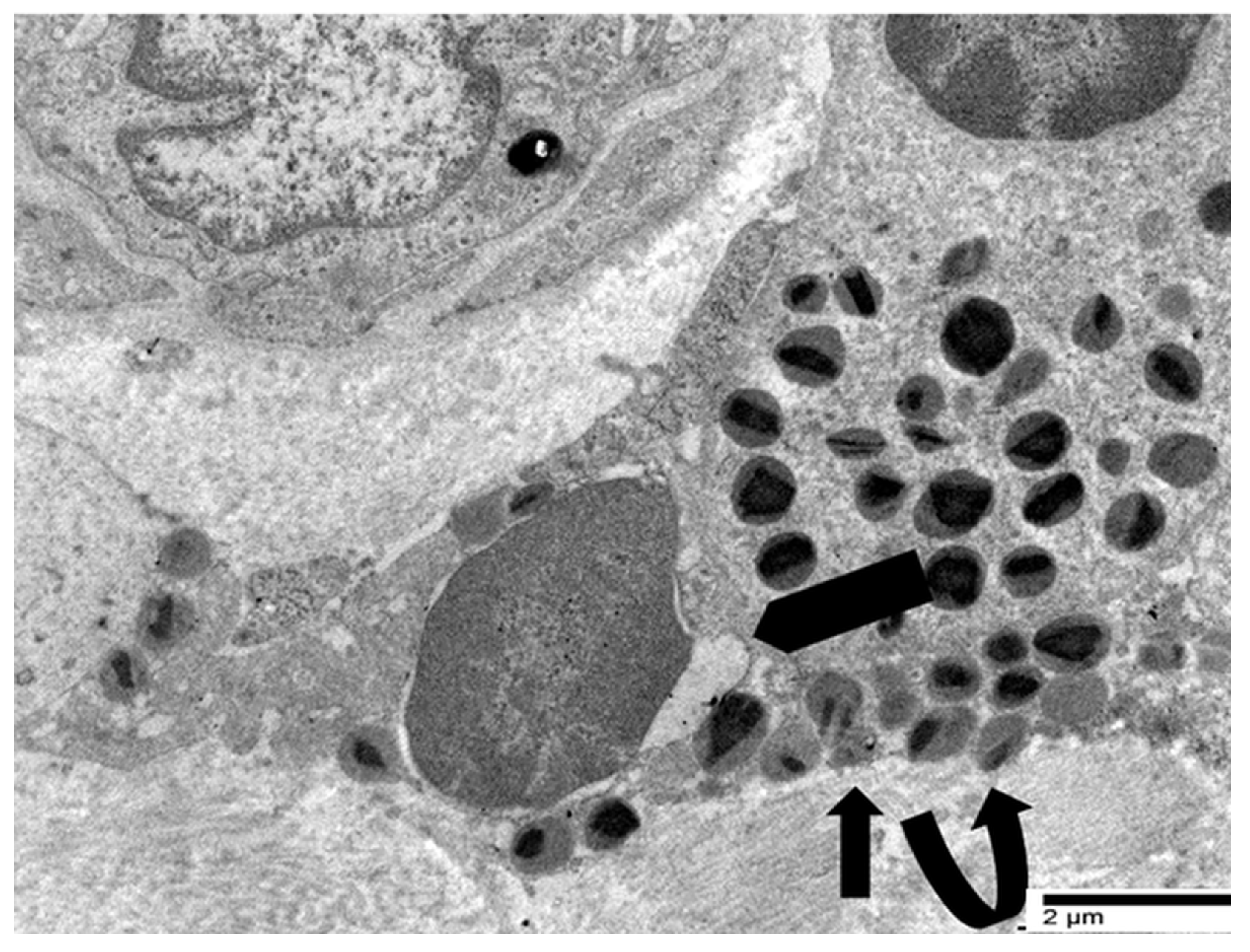- Melo, R.C.N.; Dvorak, A.M.; Weller, P.F. Contributions of electron microscopy to understand secretion of immune mediators by human eosinophils. Microsc. Microanal. 2010, 16, 653–660. [Google Scholar] [CrossRef]