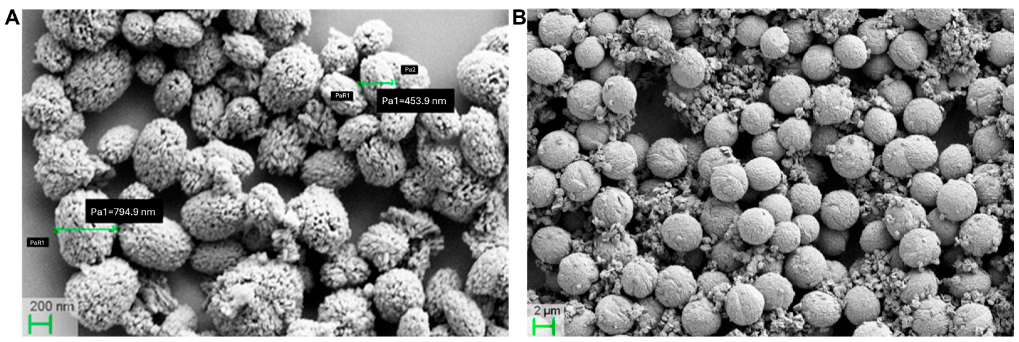 2.5. Synthesis of CaCO3 Particles, Drug Loading, Skim Milk Coating, and Drug Release