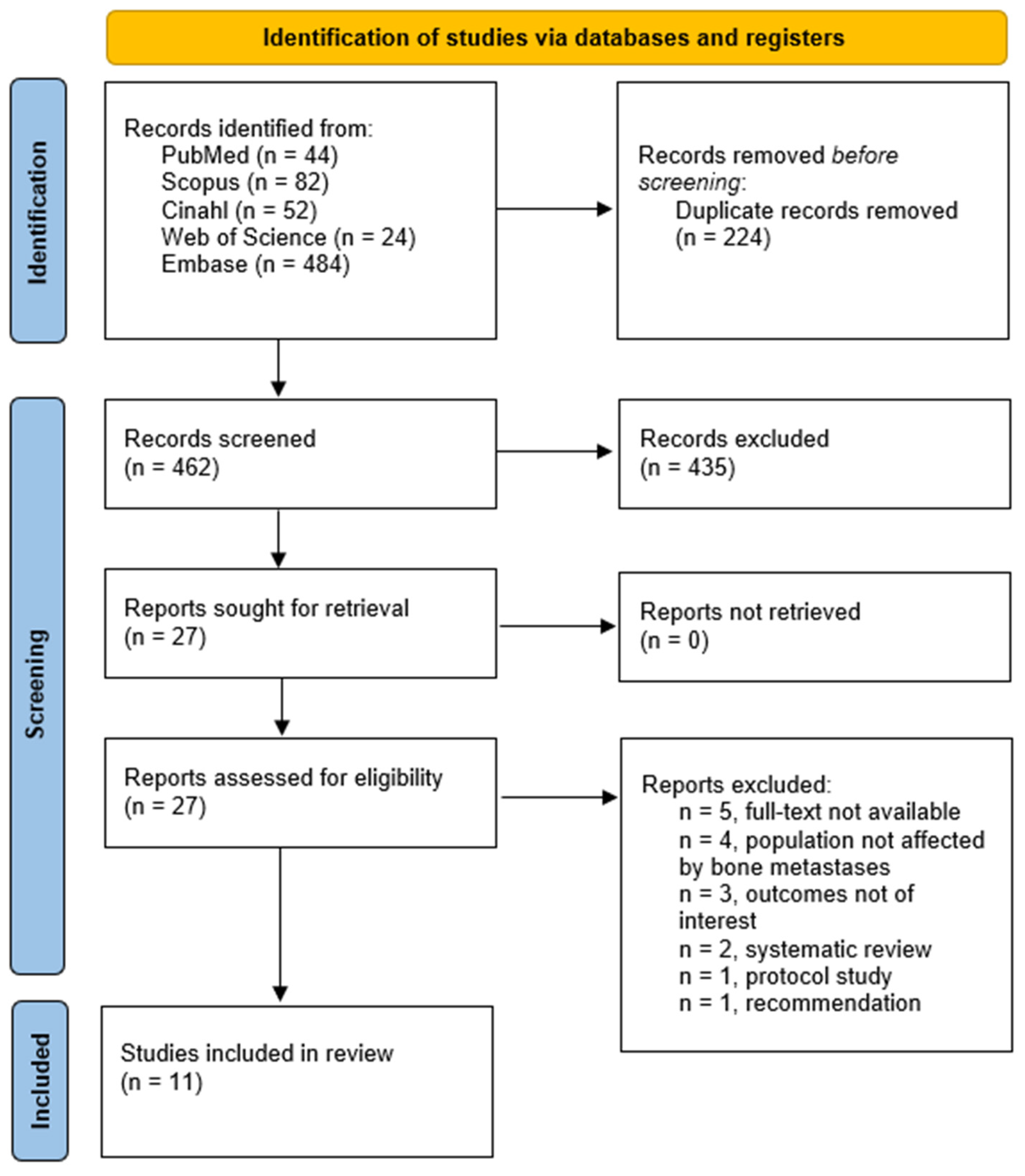 Petrucci, G.; Broccolo, A.; Marchetti, A.; Monterosso, C.; Casale, G.; Timarco, C.; Zeppola, T.; Dsoke, S.; Sandri, E.; Piredda, M.; et al. Movement-Based Interventions in Patients Affected by Bone Metastases: Impact on Physical Function and Functional Autonomy—A Systematic Review. Cancers 2025, 17, 3266. https://doi.org/10.3390/cancers17193266