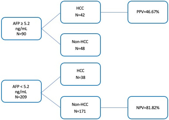| AFP (ng/mL) | 5.5 [1.3–43,857] | 3 [1–109] | 3 [1–33] |