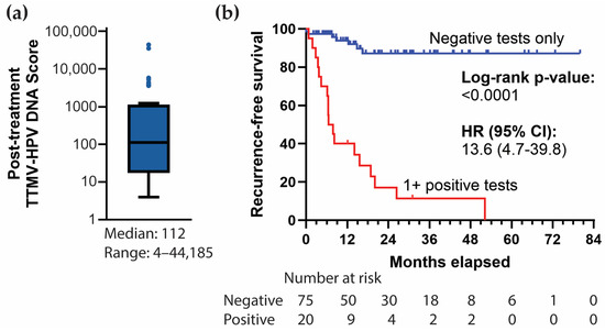 - Hanna, G.J.; Roof, S.A.; Jabalee, J.; Rettig, E.M.; Ferrandino, R.; Chen, S.; Posner, M.R.; Misiukiewicz, K.J.; Genden, E.M.; Chai, R.L.; et al. Negative Predictive Value of Circulating Tumor Tissue Modified Viral (TTMV)-HPV DNA for HPV-Driven Oropharyngeal Cancer Surveillance. Clin. Cancer Res. 2023, 29, 4306–4313. [Google Scholar] [CrossRef] [PubMed]