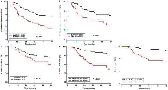 | ΔVAT HU (<20.3% vs. ≥20.3%) | <0.001 | 2.369 (1.516–3.702) | 0.020 | 2.044 (1.122–3.725) | 0.016 | 2.130 (1.149–3.947) |