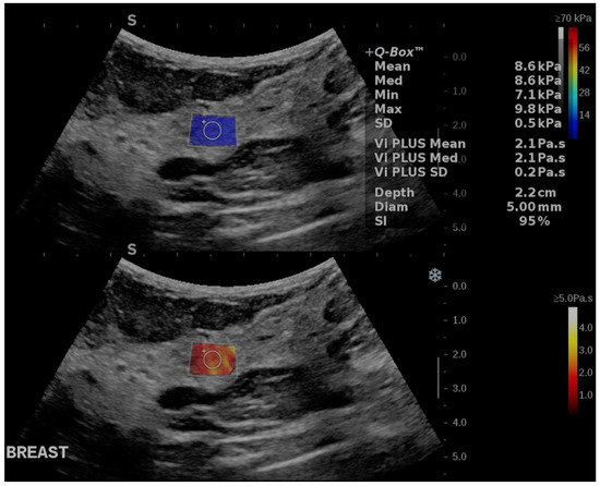 This study has several limitations. First, it was a single-center study and the measurements were conducted using a curvilinear transducer, as the Vi.PLUS mode is currently only available on this type of transducer. However, reliable measurements were achieved with a Stability Index exceeding 90%, which aligns with the manufacturer’s quality standard. The focus of this study was to gather quantitative data on viscosity and elasticity values, rather than assess structural changes in the breast glandular parenchyma, which would require the use of high-frequency transducers.