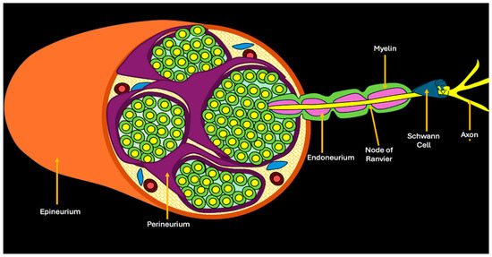 Illustration showing the normal nerve micro-architecture, depicting the various nerve layers and cellular units.