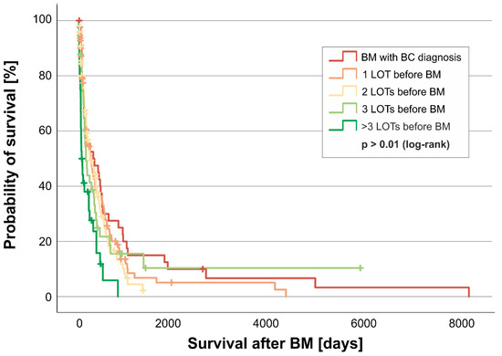 | OS (diagnosis BMs—death) | 7.0 months (212 days; quartiles 65–537 days) | |||