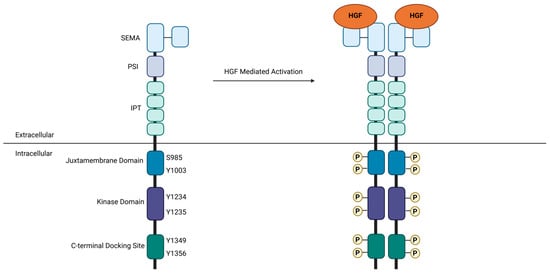 - Gandino, L.; Longati, P.; Medico, E.; Prat, M.; Comoglio, P.M. Phosphorylation of serine 985 negatively regulates the hepatocyte growth factor receptor kinase. J. Biol. Chem. 1994, 269, 1815–1820. [Google Scholar] [CrossRef] [PubMed]