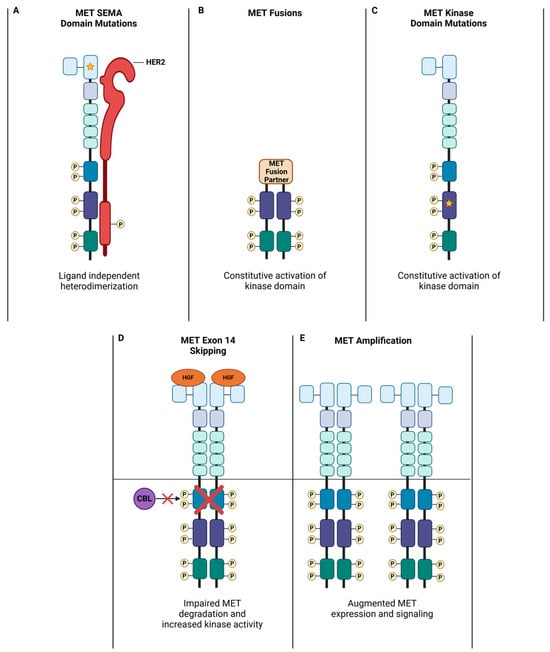 - Frampton, G.M.; Ali, S.M.; Rosenzweig, M.; Chmielecki, J.; Lu, X.; Bauer, T.M.; Akimov, M.; Bufill, J.A.; Lee, C.B.; Jentz, D.; et al. Activation of MET via Diverse Exon 14 Splicing Alterations Occurs in Multiple Tumor Types and Confers Clinical Sensitivity to MET Inhibitors. Cancer Discov. 2015, 5, 850–859. [Google Scholar] [CrossRef]