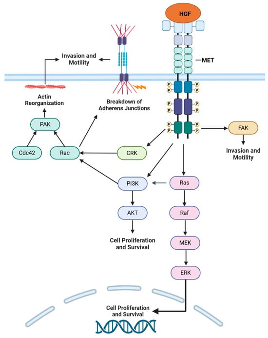- Wang, F.; Liu, Y.; Qiu, W.; Shum, E.; Feng, M.; Zhao, D.; Zheng, D.; Borczuk, A.; Cheng, H.; Halmos, B. Functional Analysis of MET Exon 14 Skipping Alteration in Cancer Invasion and Metastatic Dissemination. Cancer Res. 2022, 82, 1365–1379. [Google Scholar] [CrossRef]