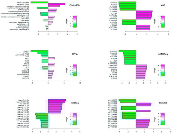 - Argelaguet, R.; Velten, B.; Arnol, D.; Dietrich, S.; Zenz, T.; Marioni, J.C.; Buettner, F.; Huber, W.; Stegle, O. Multi-Omics Factor Analysis-a Framework for Unsupervised Integration of Multi-Omics Data Sets. Mol. Syst. Biol. 2018, 14, e8124. [Google Scholar] [CrossRef] [PubMed]