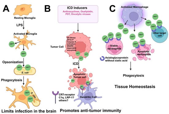 - Verneret, M.; Tacnet-Delorme, P.; Osman, R.; Awad, R.; Grichine, A.; Kleman, J.-P.; Frachet, P. Relative Contribution of C1q and Apoptotic Cell-Surface Calreticulin to Macrophage Phagocytosis. J. Innate Immun. 2014, 6, 426–434. [Google Scholar] [CrossRef] [PubMed]