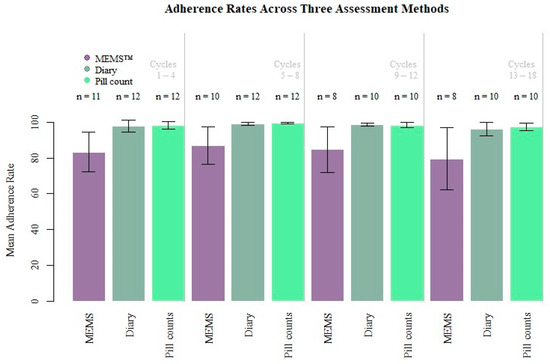 - Martin, S.; Elliott-Desorbo, D.K.; Calabrese, S.; Wolters, P.L.; Roby, G.; Brennan, T.; Wood, L.V. A Comparison of Adherence Assessment Methods Utilized in the United States: Perspectives of Researchers, HIV-Infected Children, and their Caregivers. AIDS Patient Care STDs 2009, 23, 593–601. [Google Scholar] [CrossRef]