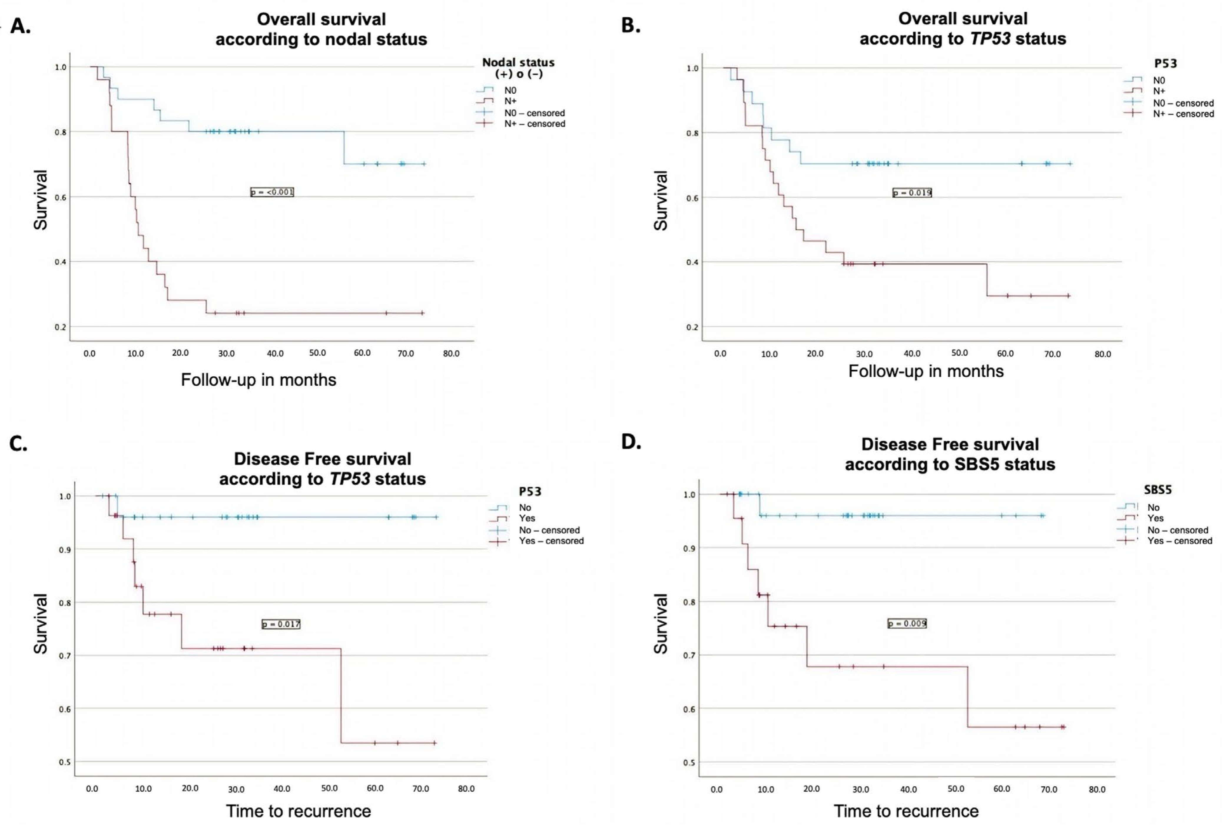 TP53 | 15.4 vs. 54.2 | 0.019 | --- | TP53 | 51.3 vs. 70.6 | 0.017 | 11.5 (1.2–99.9) p = 0.027 |