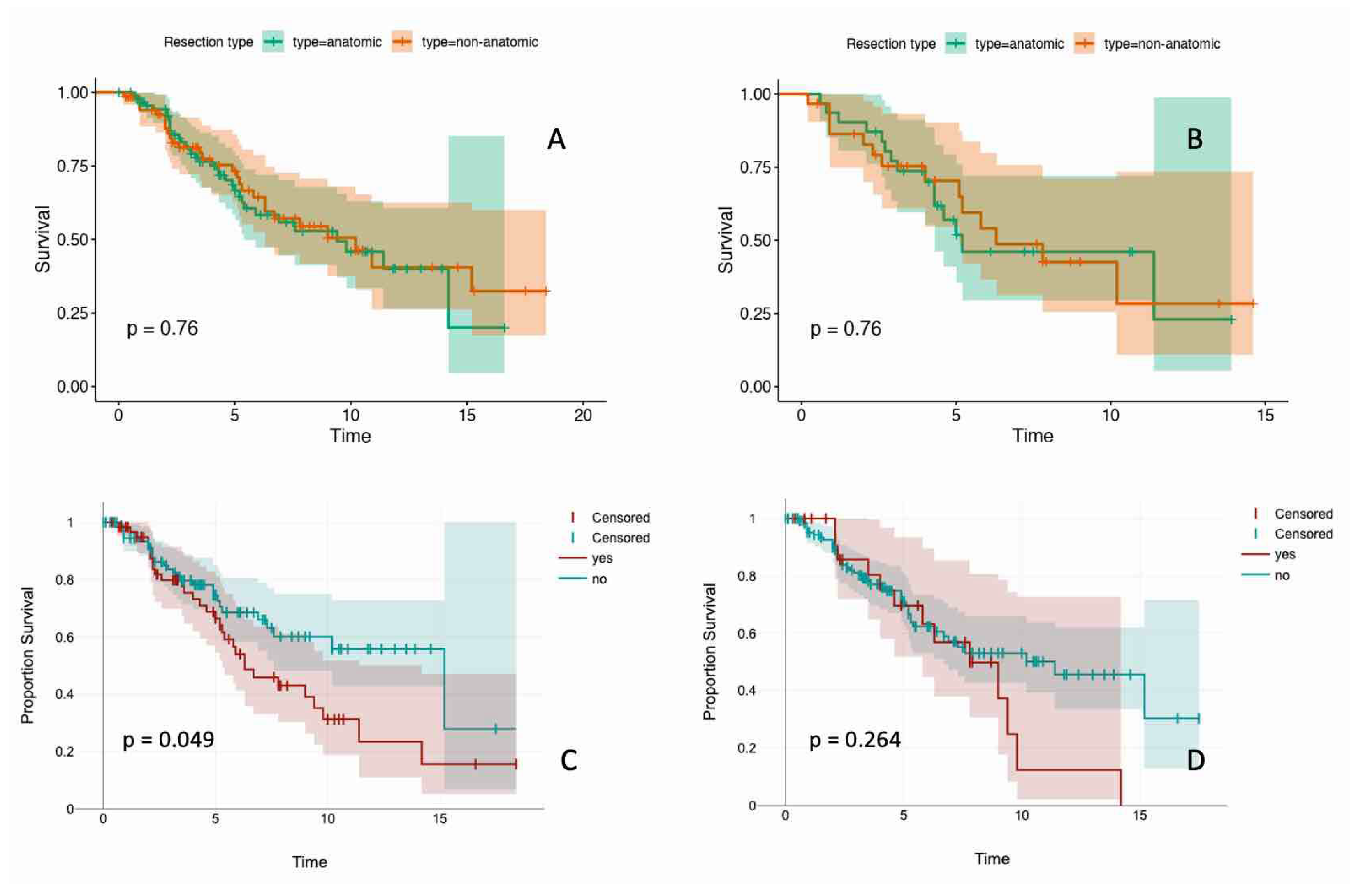 | Mode of resection | Anatomical | 47 | 4 | |||