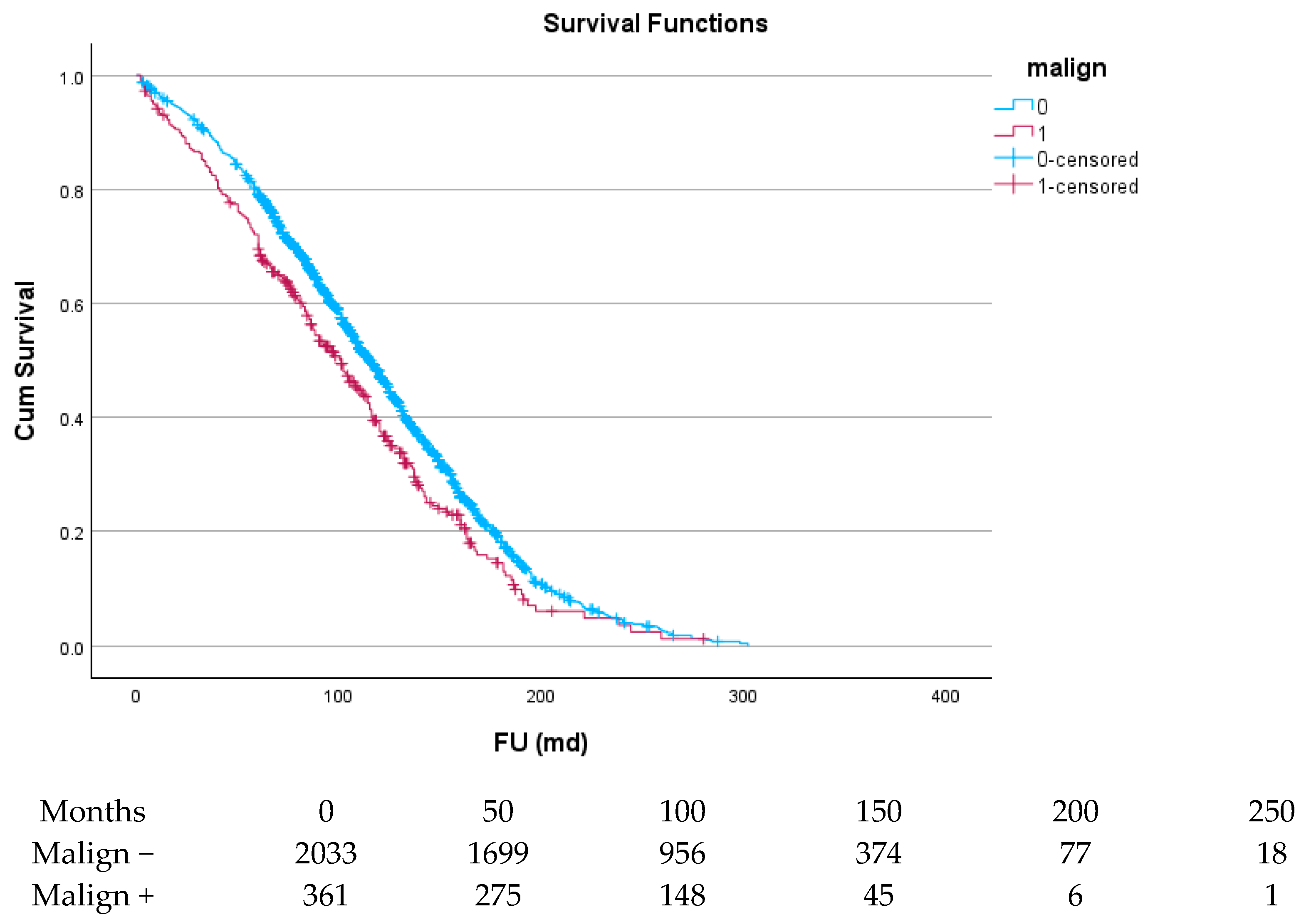 47]. Although prior malignancy was currently identified as an independent predictor for long-term survival, it ranked only 8th out of 10 parameters for its significance, while age, renal and pulmonary dysfunction, as well as peripheral artery disease, and diabetes were more important. In terms of clinical relevancy, expressed as an odds ratio, malignancy ranked as the last of ten predictors. A second malignancy did not occur more often with a first malignancy during long-term follow-up compared to a first malignancy in patients without such history. A lower survival rate because of metastasis could be expected if the interval between malignancy and cardiac surgery was less than 5 years. With a smaller interval, the chance of cure could be considered less likely [