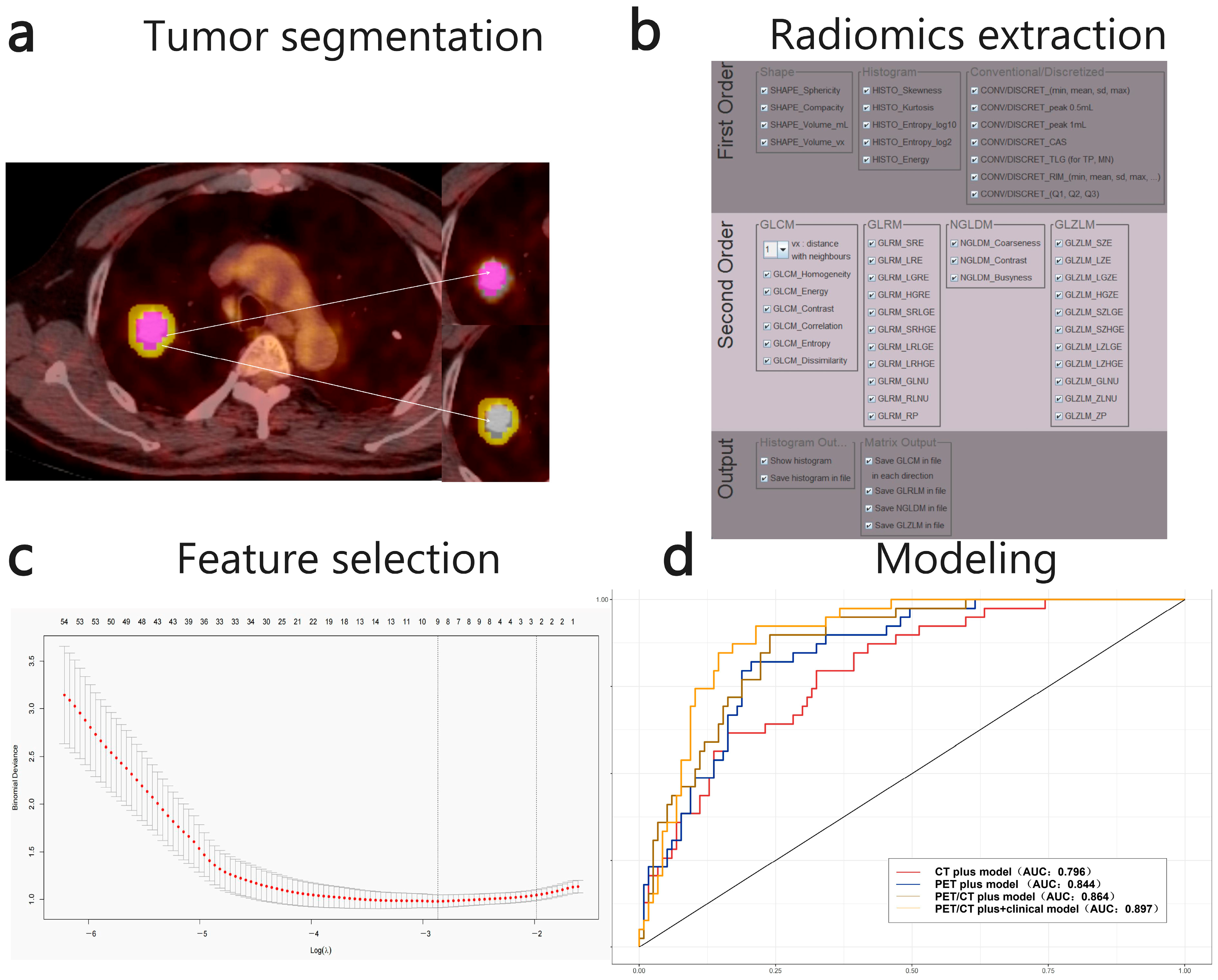 | Three models corresponding to λ.1se of Lasso regression | PET Primary model | 0.823 (0.663–0.927) | 0.818 (0.672–0.894) | 0.786 (0.567–0.979) | 0.750 (0.630–0.860) |