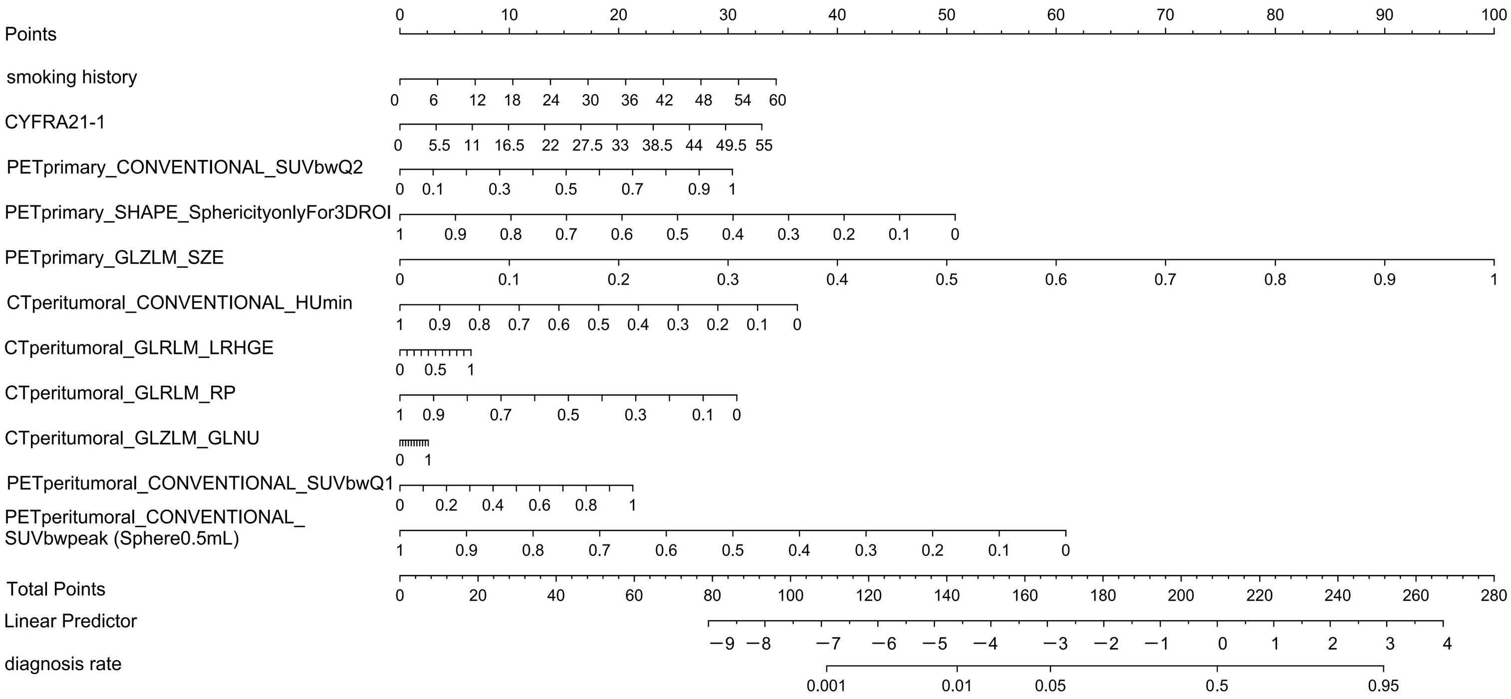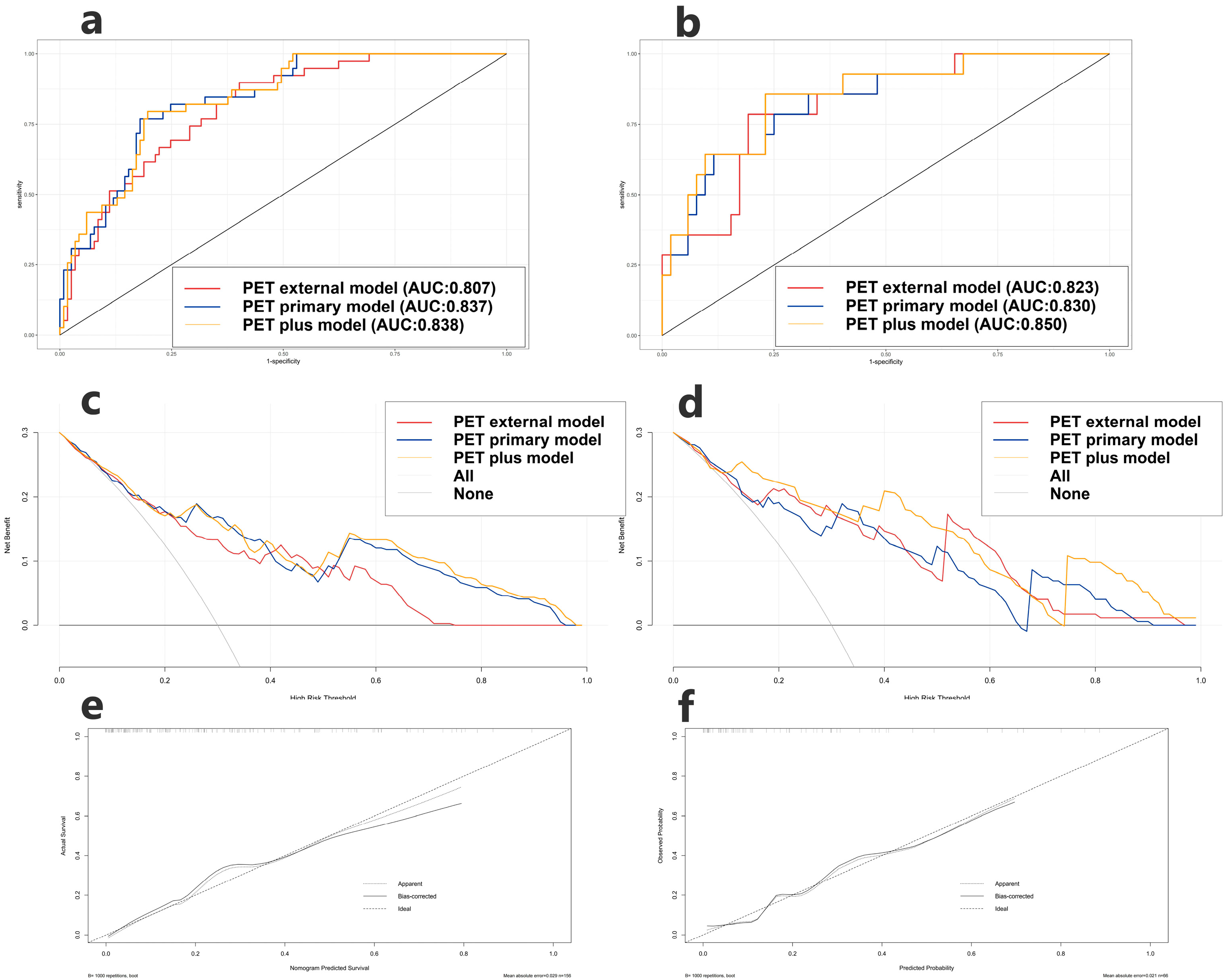 | PET External model | 0.830 (0.679–0.924) | 0.820 (0.683–0.971) | 0.786 (0.466–0.938) | 0.808 (0.667–0.939) | |