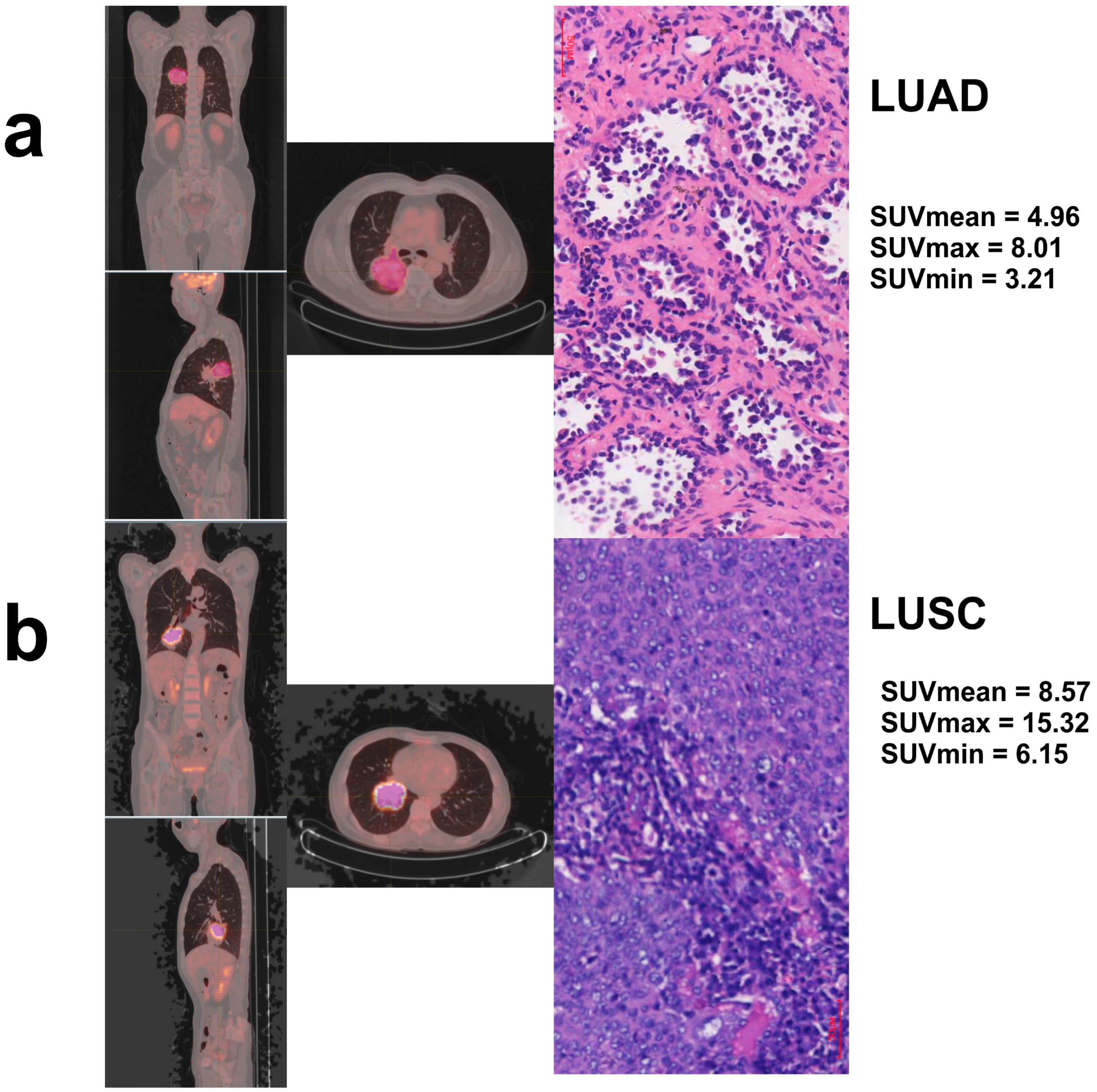- Han, Y.; Ma, Y.; Wu, Z.; Zhang, F.; Zheng, D.; Liu, X.; Tao, L.; Liang, Z.; Yang, Z.; Li, X.; et al. Histologic subtype classification of non-small cell lung cancer using PET/CT images. Eur. J. Nucl. Med. Mol. Imaging 2021, 48, 350–360. [Google Scholar] [CrossRef]