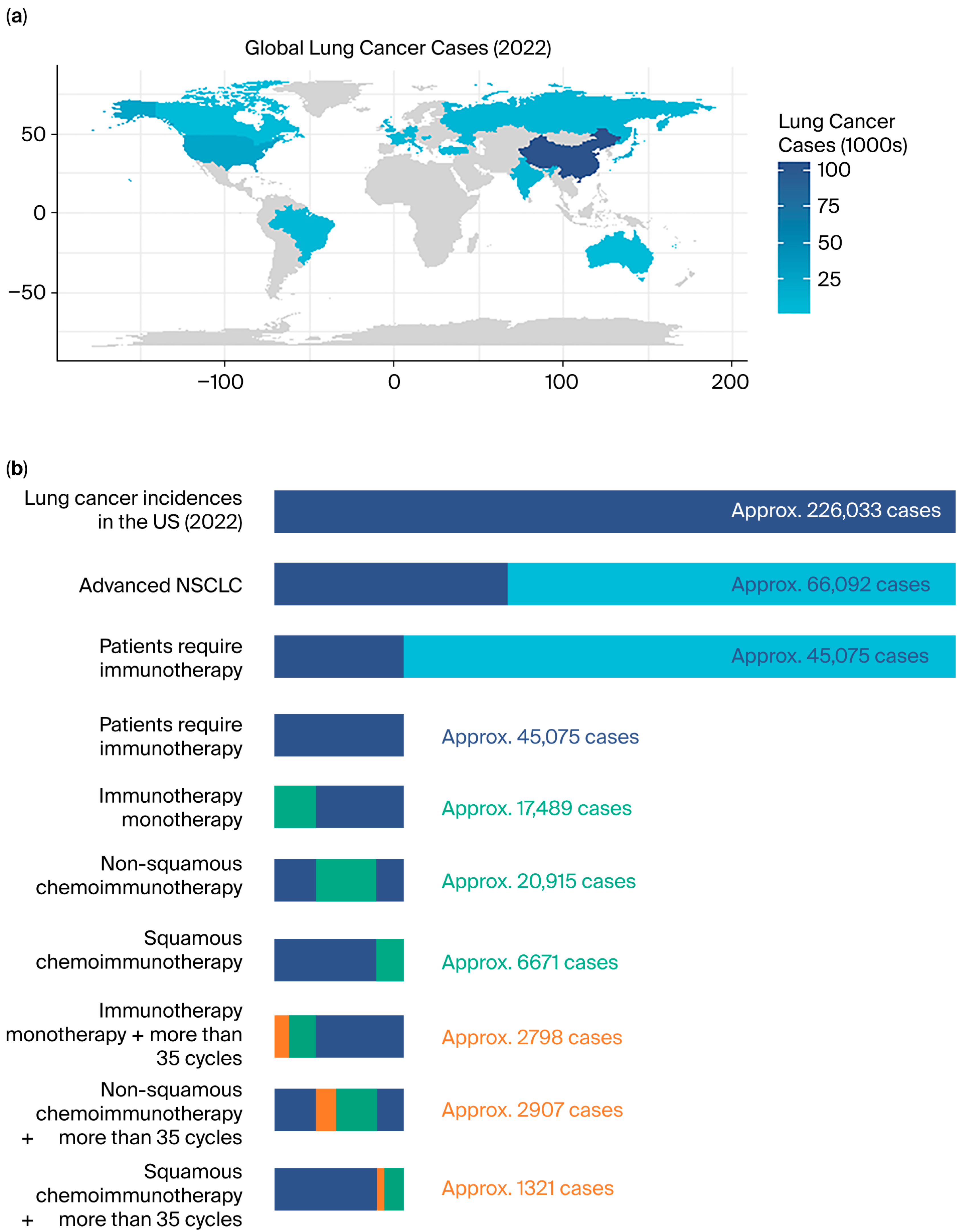 - Brahmer, J.R.; Lee, J.-S.; Ciuleanu, T.-E.; Bernabe Caro, R.; Nishio, M.; Urban, L.; Audigier-Valette, C.; Lupinacci, L.; Sangha, R.; Pluzanski, A.; et al. Five-Year Survival Outcomes with Nivolumab Plus Ipilimumab Versus Chemotherapy as First-Line Treatment for Metastatic Non–Small-Cell Lung Cancer in CheckMate 227. J. Clin. Oncol. 2023, 41, 1200–1212. [Google Scholar] [CrossRef]