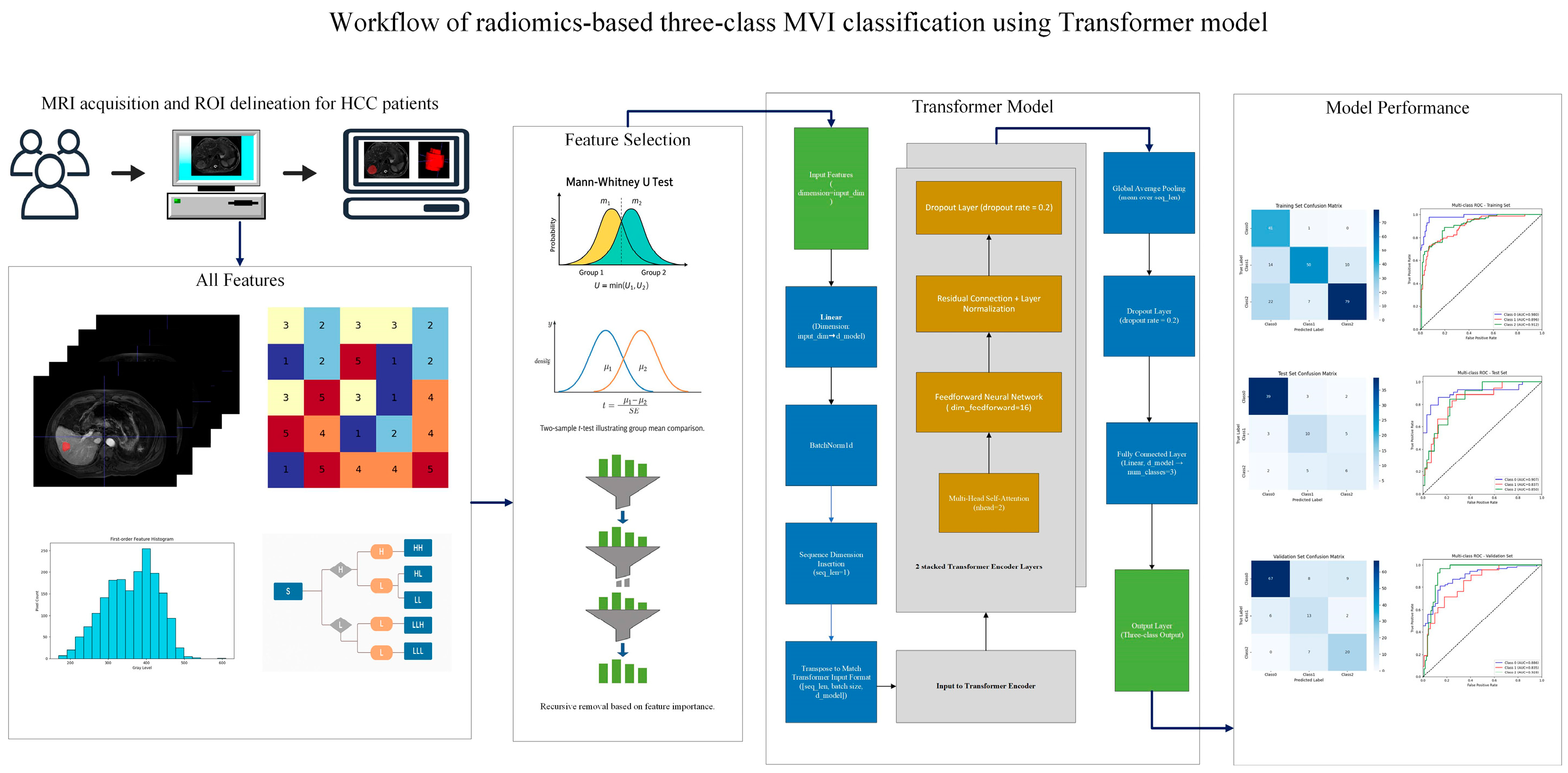 Chicago/Turabian StyleHe, Ruilin, Huilin Chen, Wenjie Zou, Mengting Gu, Xingyu Zhao, Ningyang Jia, and Wanmin Liu. 2025. "Transformer-Based Deep Learning for Preoperative Prediction of Microvascular Invasion in Hepatocellular Carcinoma" Cancers 17, no. 20: 3314. https://doi.org/10.3390/cancers17203314