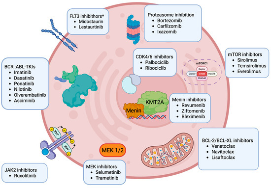 Different precision medicine approaches have, therefore, been explored to address this large unmet clinical need, including the inhibition of signaling pathways (i.e., FLT3 inhibition) and the modulation of aberrant epigenetic programs (i.e., hypomethylating treatment [61] and DOT1L inhibition [127]); however, these efforts have provided only very limited benefits for these patients. Novel treatment strategies, such as immunotherapy (e.g., blinatumomab [128]), BH3 mimetics agents, and menin inhibitors (as well as their combinations) have recently emerged as promising therapeutic approaches for this very difficult-to-treat ALL subtype (Table 1).