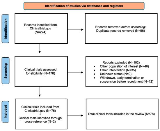 Flow diagram reporting the results of the searches performed on 15 May 2025 at https://clinicaltrials.gov.