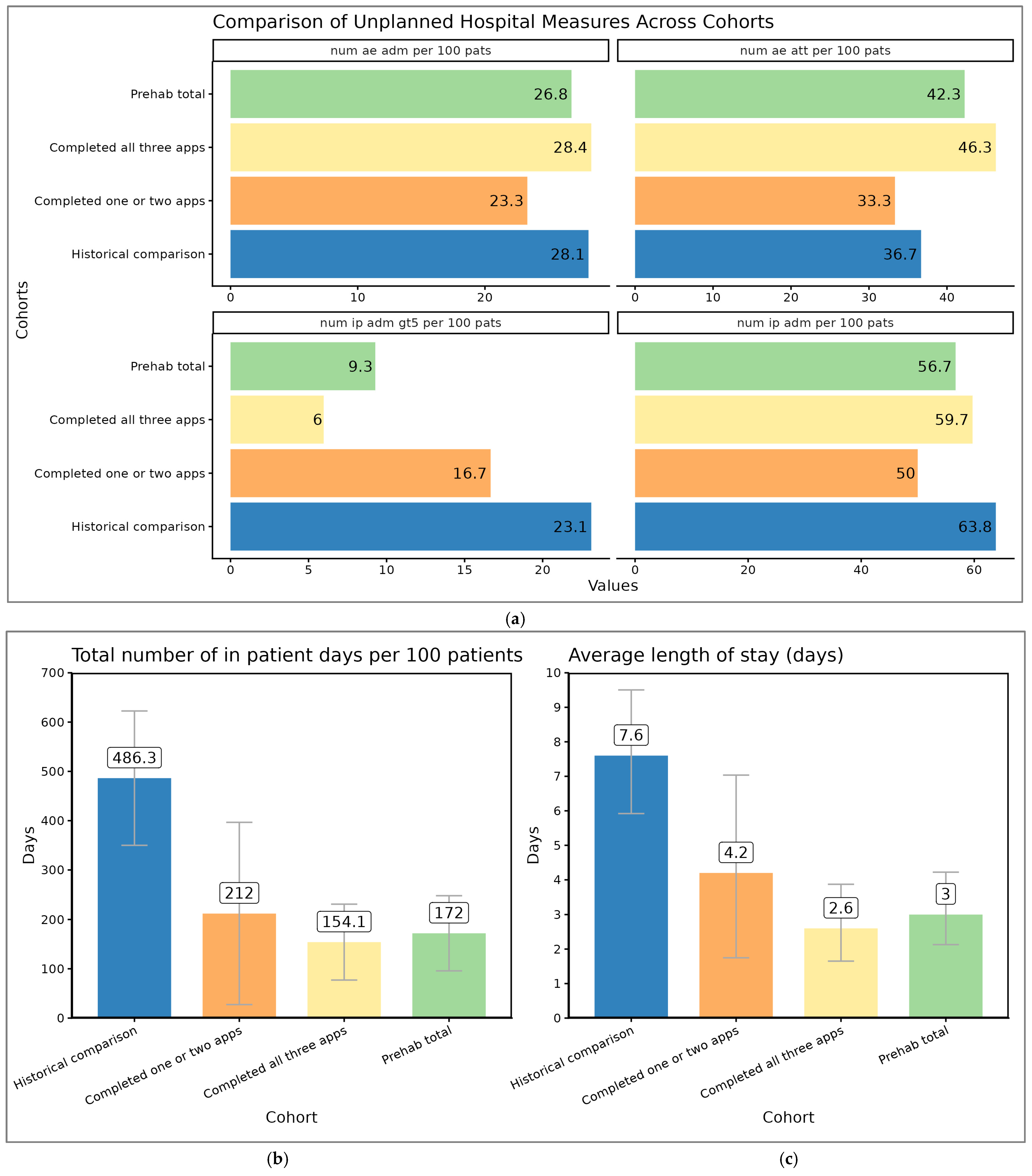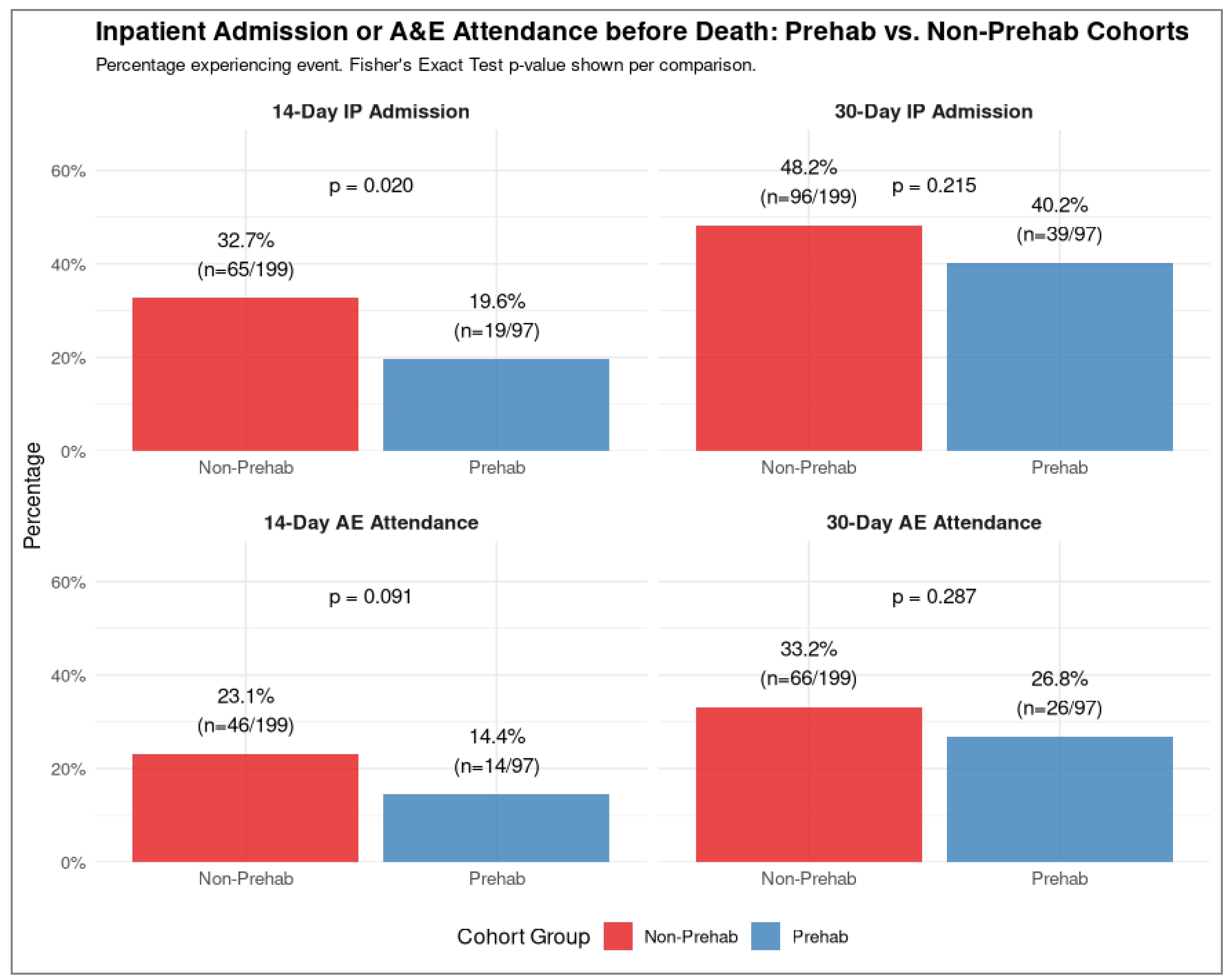 - Phillips, I.; Deans, M.; Walton, A.; Vallet, M.; Mencnarowksi, J.; McMillan, D.; Peacock, C.; Hall, P.; O’Brien, F.; Stares, M.; et al. Early prehabilitation reduces admissions and time in hospital in patients with newly diagnosed lung cancer. BMJ Support. Palliat. Care 2024, 15, 125–129. [Google Scholar] [CrossRef] [PubMed]