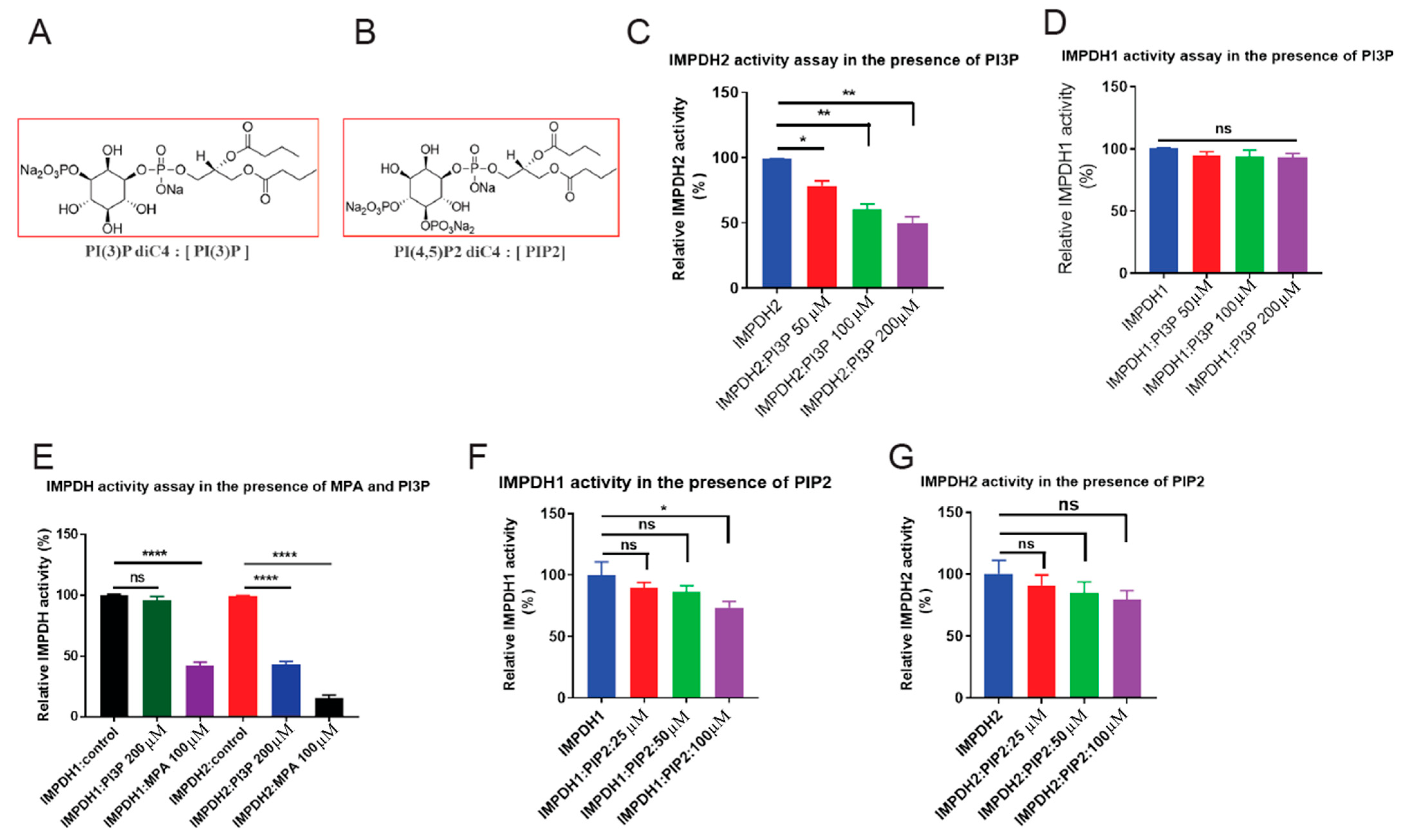 2.6. IMPDH1 and IMPDH2 Activity Assay in the Presence of PIP2 (PI(4,5)P2) and PI3P (PI(3)P diC8)
