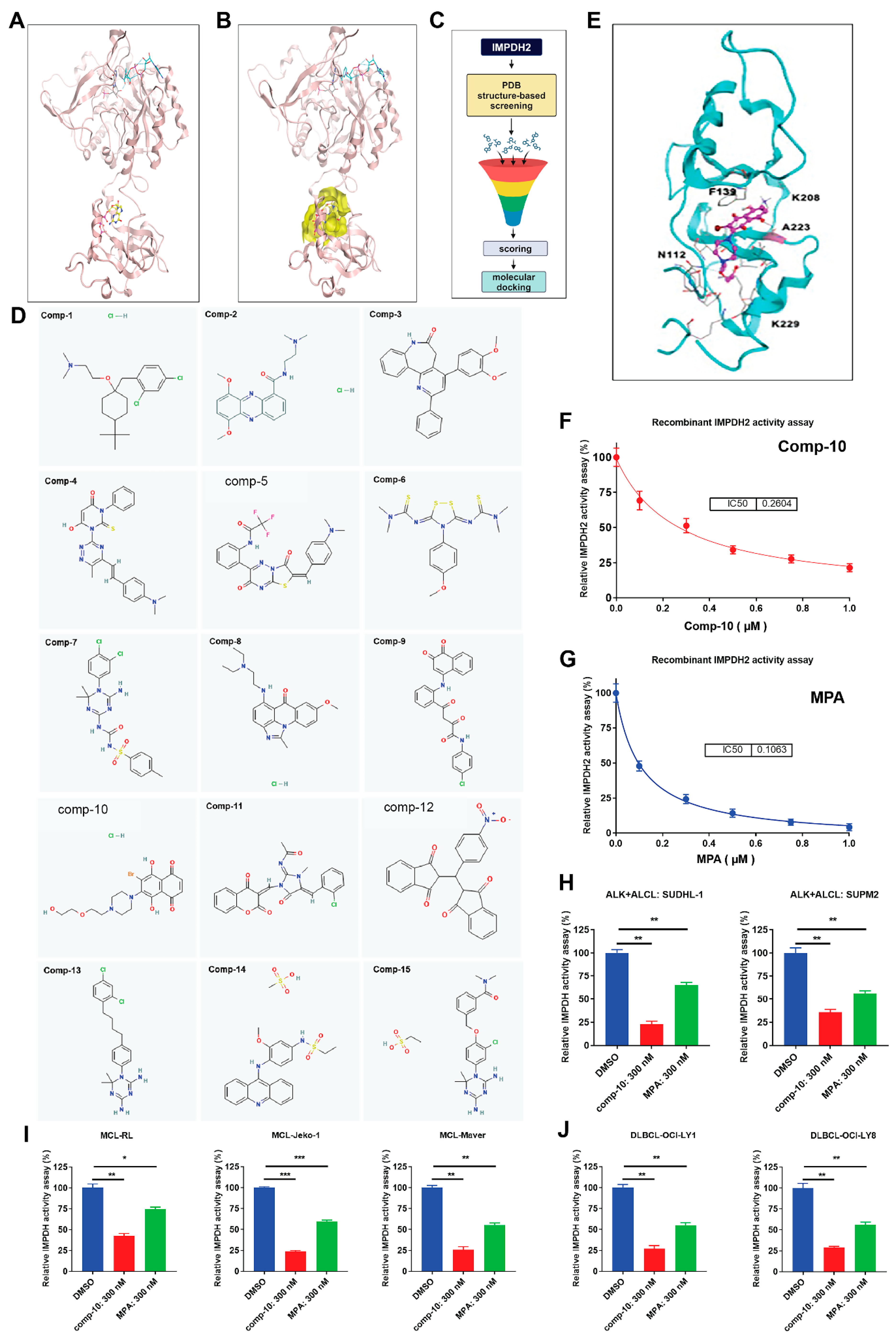 3.5. Structure-Based in Silico Screening and Discovery of a Novel Allosteric Inhibitor Targeting IMPDH2