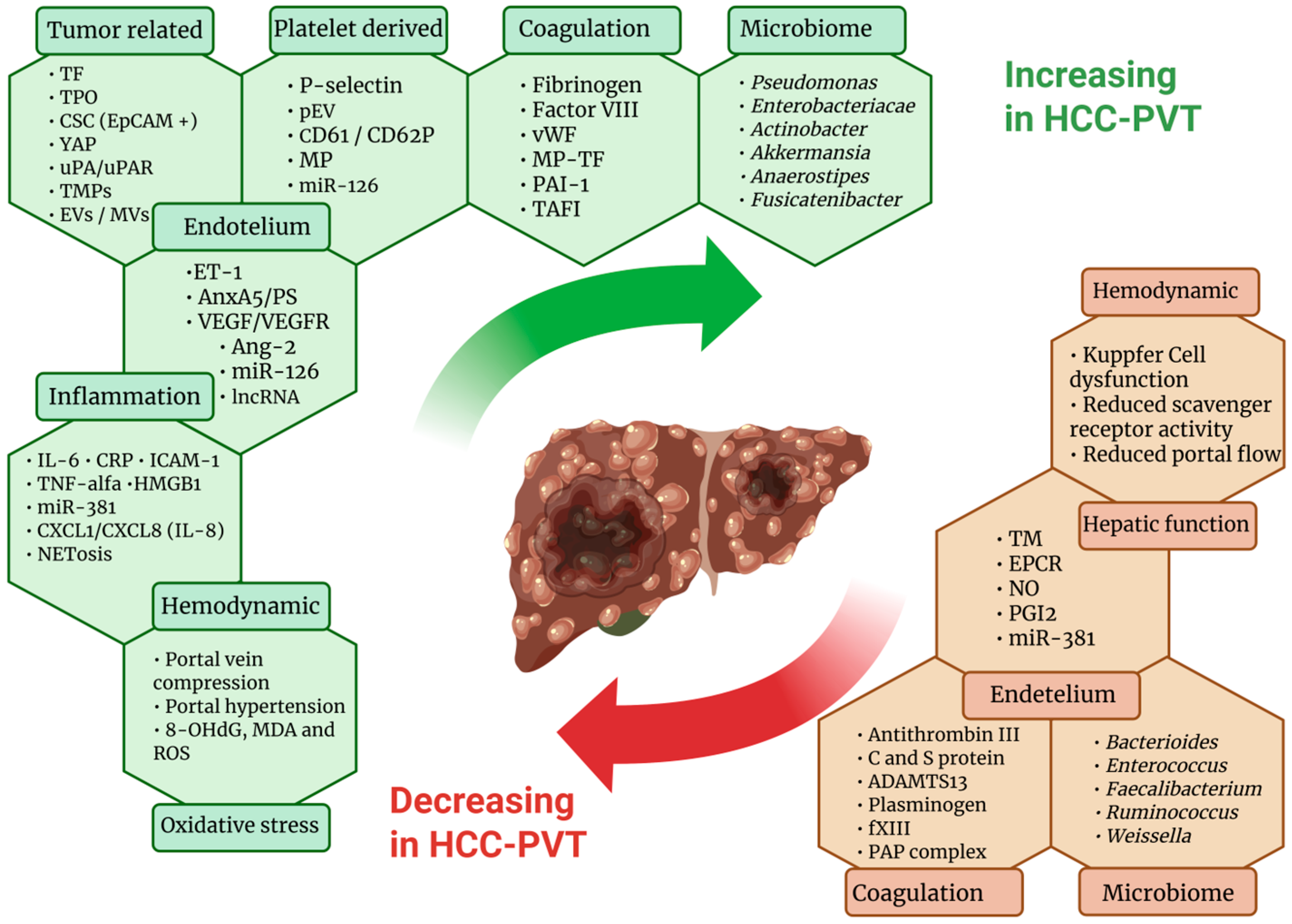 - Giuli, L.; Pallozzi, M.; Venturini, G.; Gasbarrini, A.; Ponziani, F.R.; Santopaolo, F. Molecular Mechanisms Underlying Vascular Liver Diseases: Focus on Thrombosis. Int. J. Mol. Sci. 2023, 24, 12754. [Google Scholar] [CrossRef]