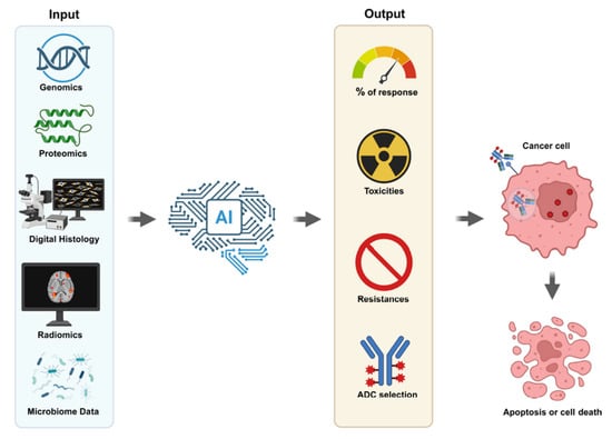 - Sobhani, N.; D’Angelo, A.; Pittacolo, M.; Mondani, G.; Generali, D. Future AI Will Most Likely Predict Antibody-Drug Conjugate Response in Oncology: A Review and Expert Opinion. Cancers 2024, 16, 3089. [Google Scholar] [CrossRef]