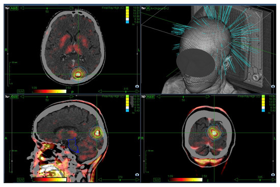 - Grosu, A.L.; Weber, W.A.; Franz, M.; Stärk, S.; Piert, M.; Thamm, R.; Gumprecht, H.; Schwaiger, M.; Molls, M.; Nieder, C. Reirradiation of recurrent high-grade gliomas using amino acid PET (SPECT)/CT/MRI image fusion to determine gross tumor volume for stereotactic fractionated radiotherapy. J. Radiat. Oncol. Biol. Phys. 2005, 63, 511–519. [Google Scholar] [CrossRef]