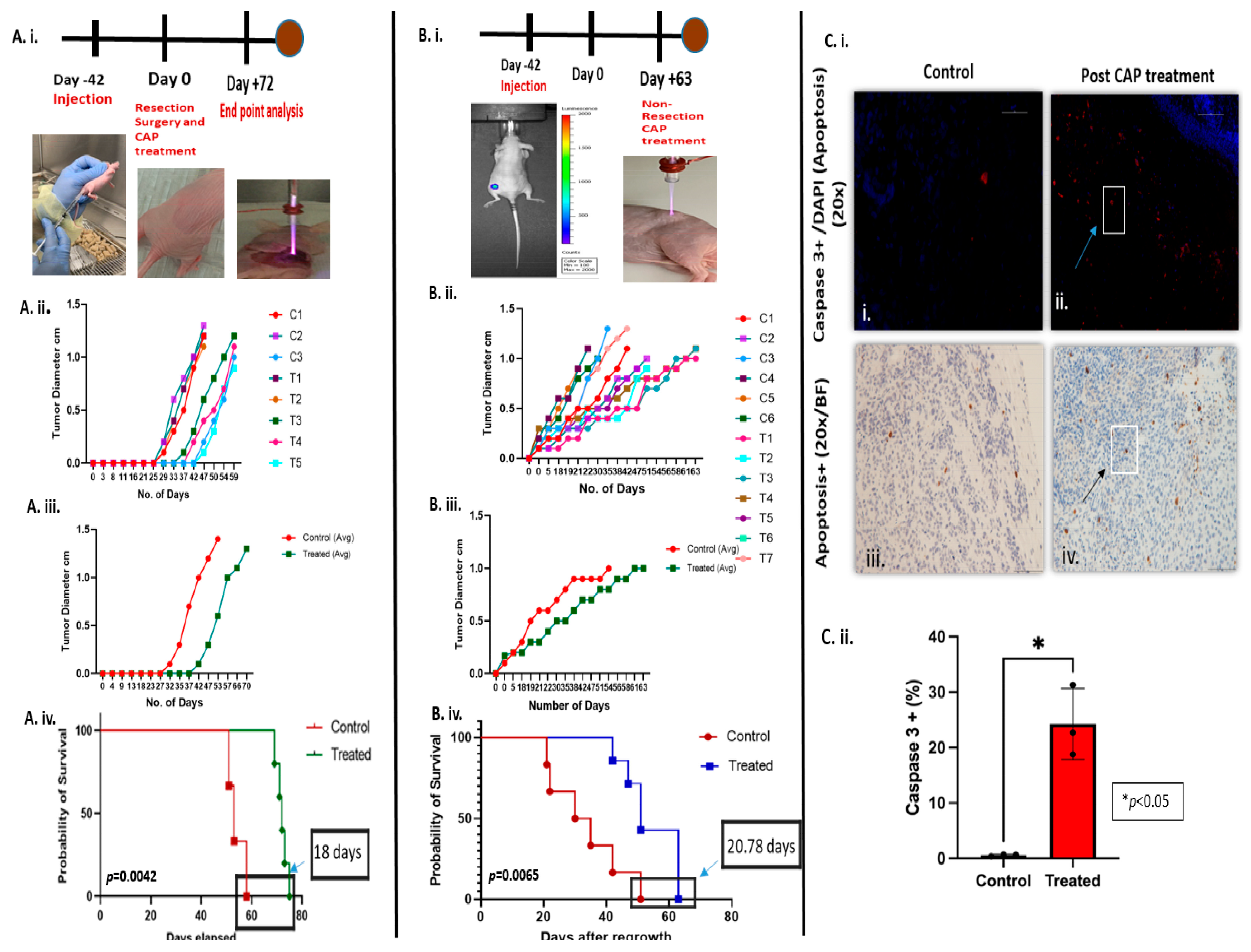 Both control and CAP-treated tumors in the incomplete or non-resection model were collected for analysis 24 h post-CAP treatment.
