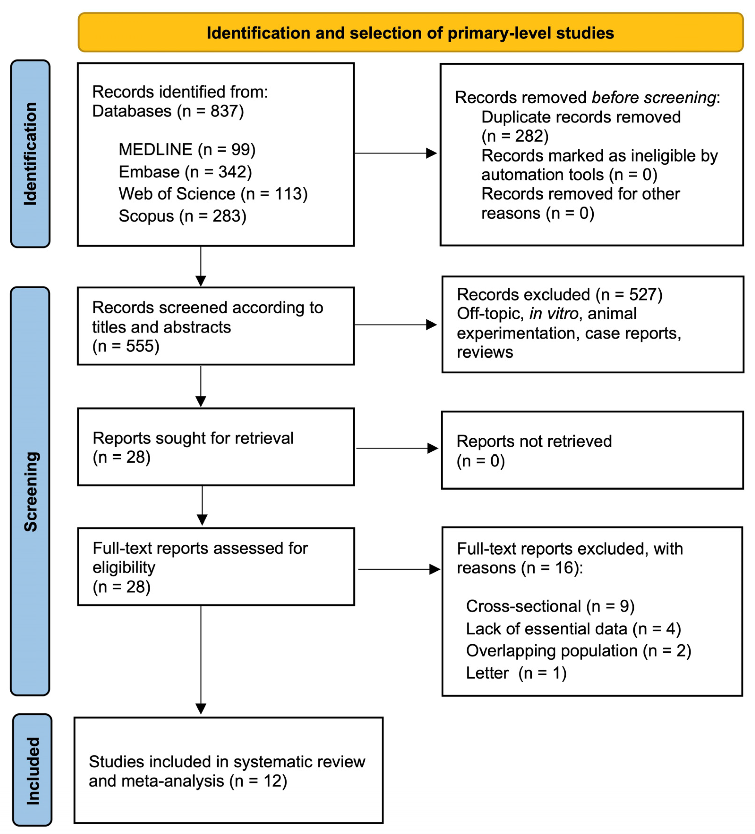 | Moderate RoB | 6 | 420 | REM | D-L | RR = 3.70 (2.01–6.82) | <0.001 | 0.48 | 0.0 |