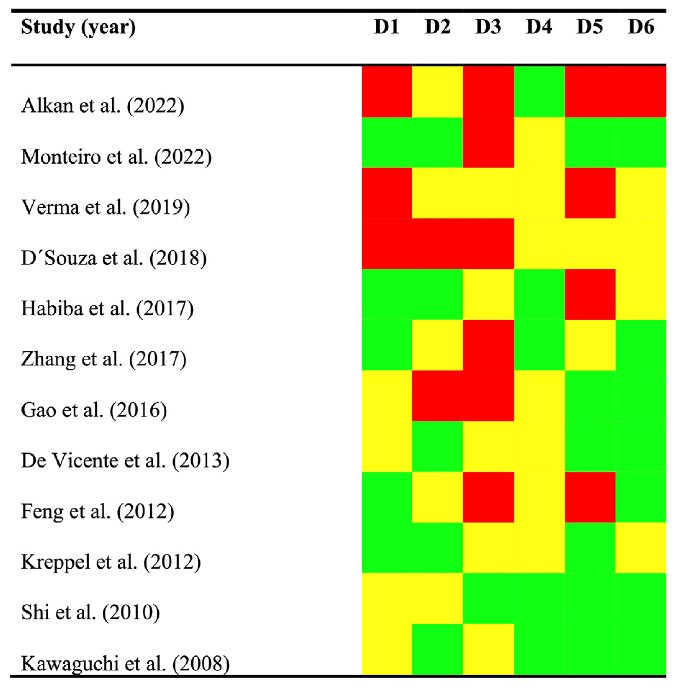 - Hayden, J.A.; Côté, P.; Bombardier, C. Evaluation of the quality of prognosis studies in systematic reviews. Ann. Intern. Med. 2006, 144, 427–437. [Google Scholar] [CrossRef] [PubMed]