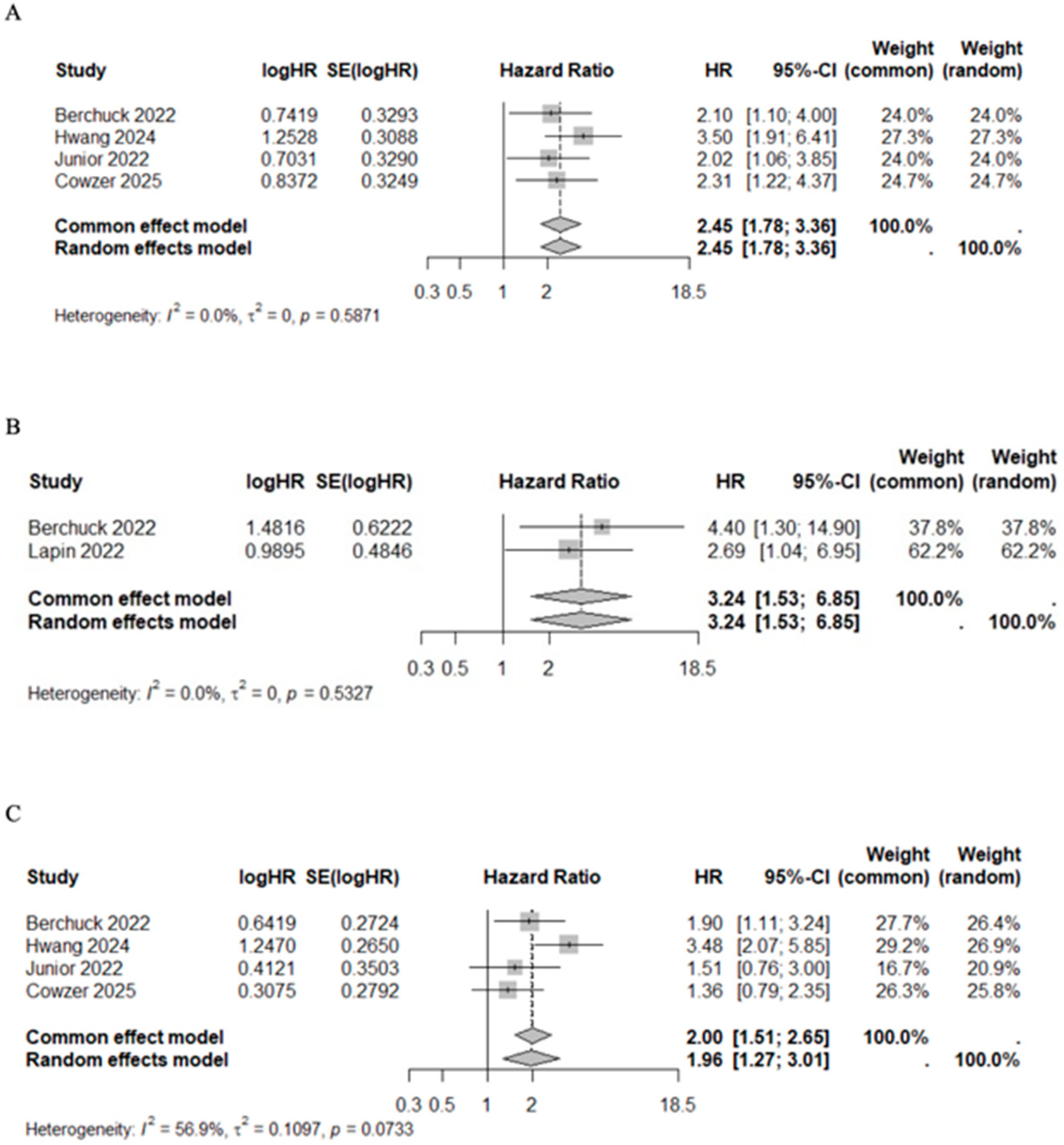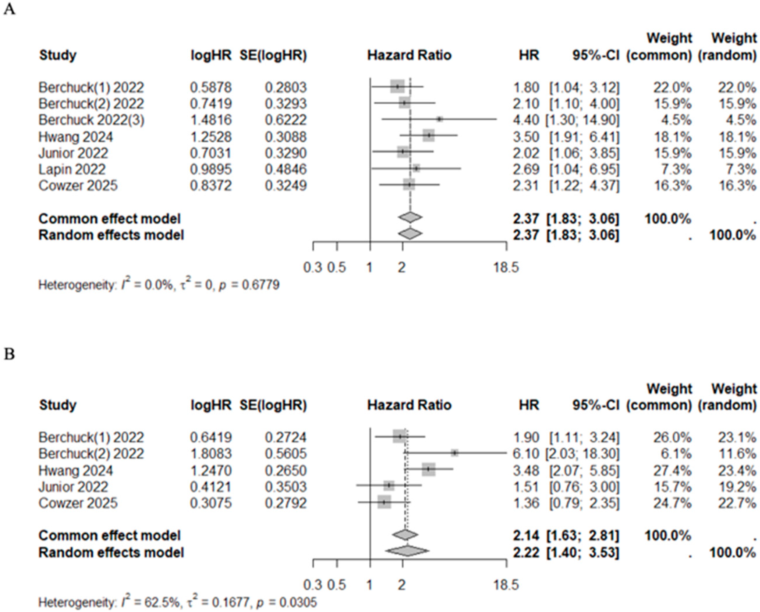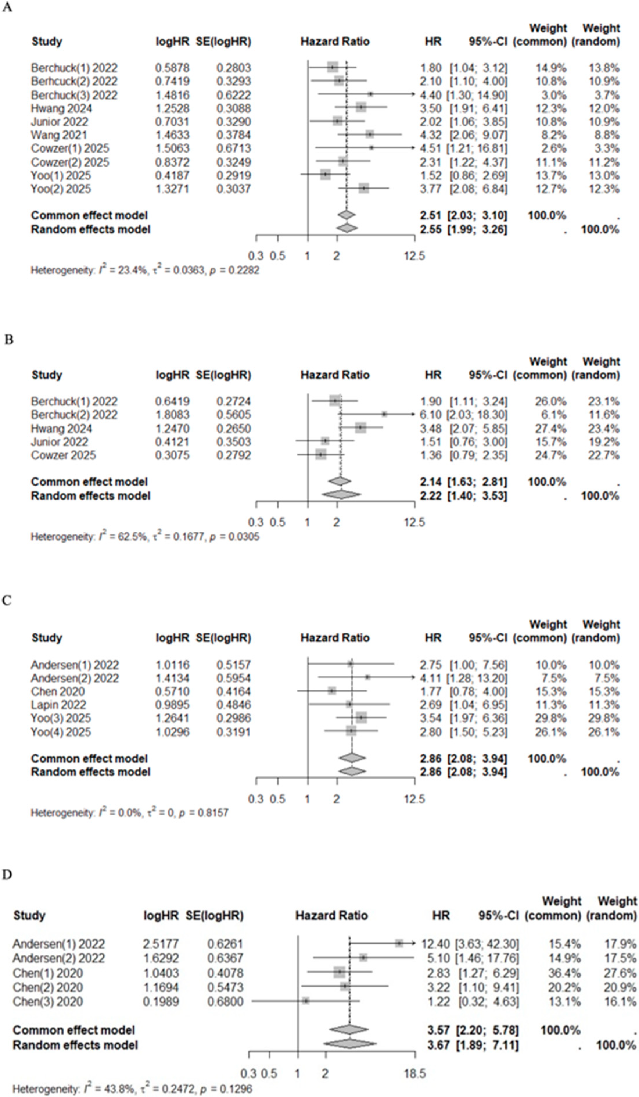 | Hwang 2024 [48] | 101 | Overall | VAF > 3.9% | OS | 3.5 (1.94–6.51), p < 0.0001 | 3.49 (1.72–7.08), p = 0.0005 |