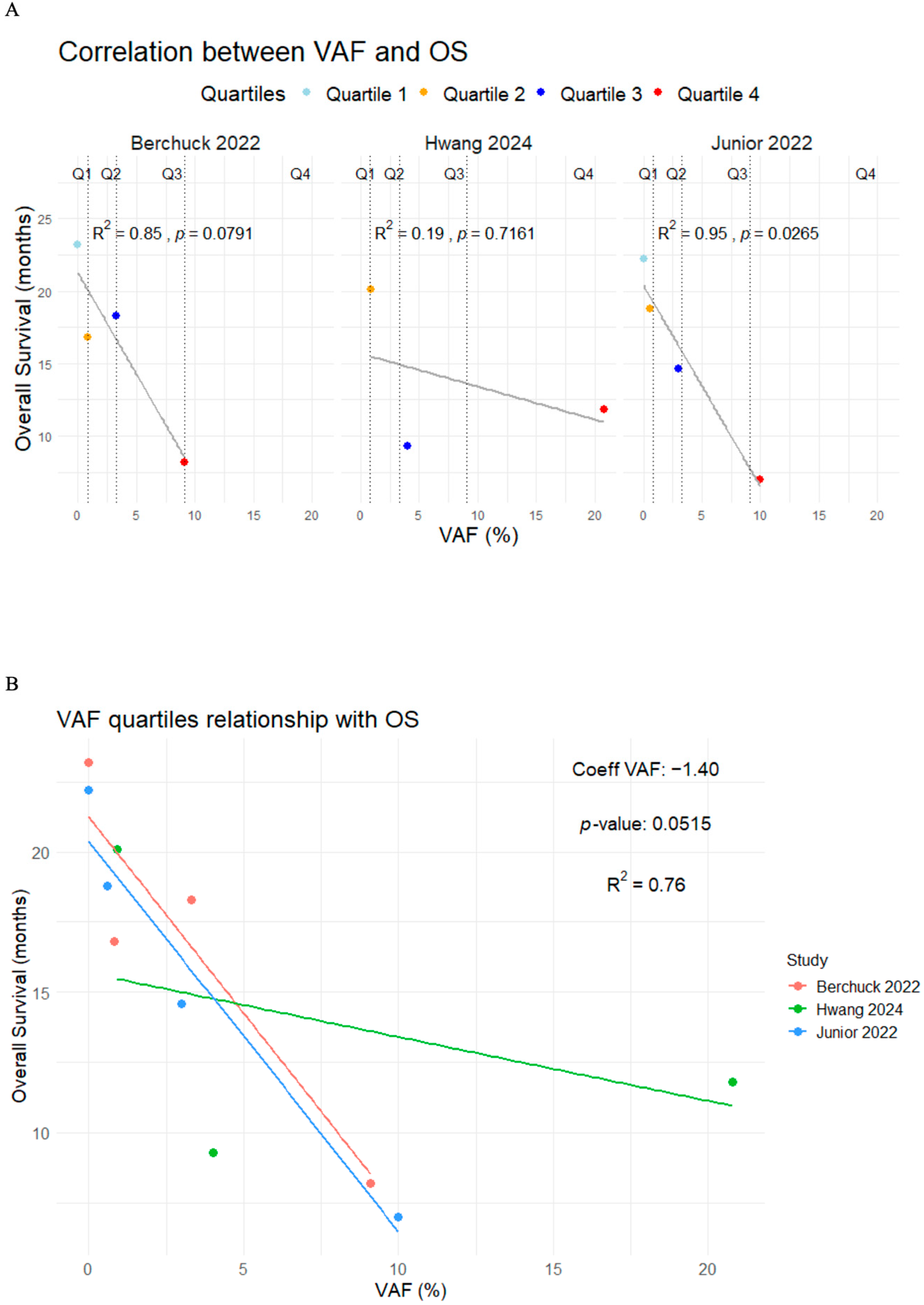 | Study ID | Population | Median VAF % | VAF | OS | PFS | VAF | OS | PFS |